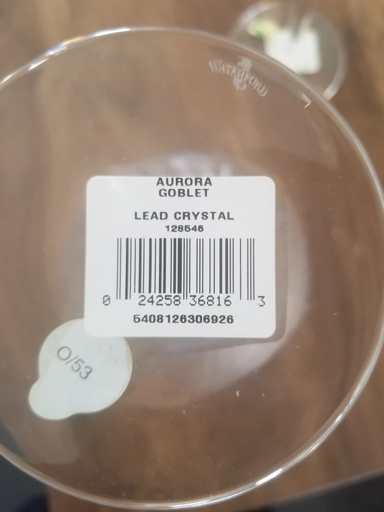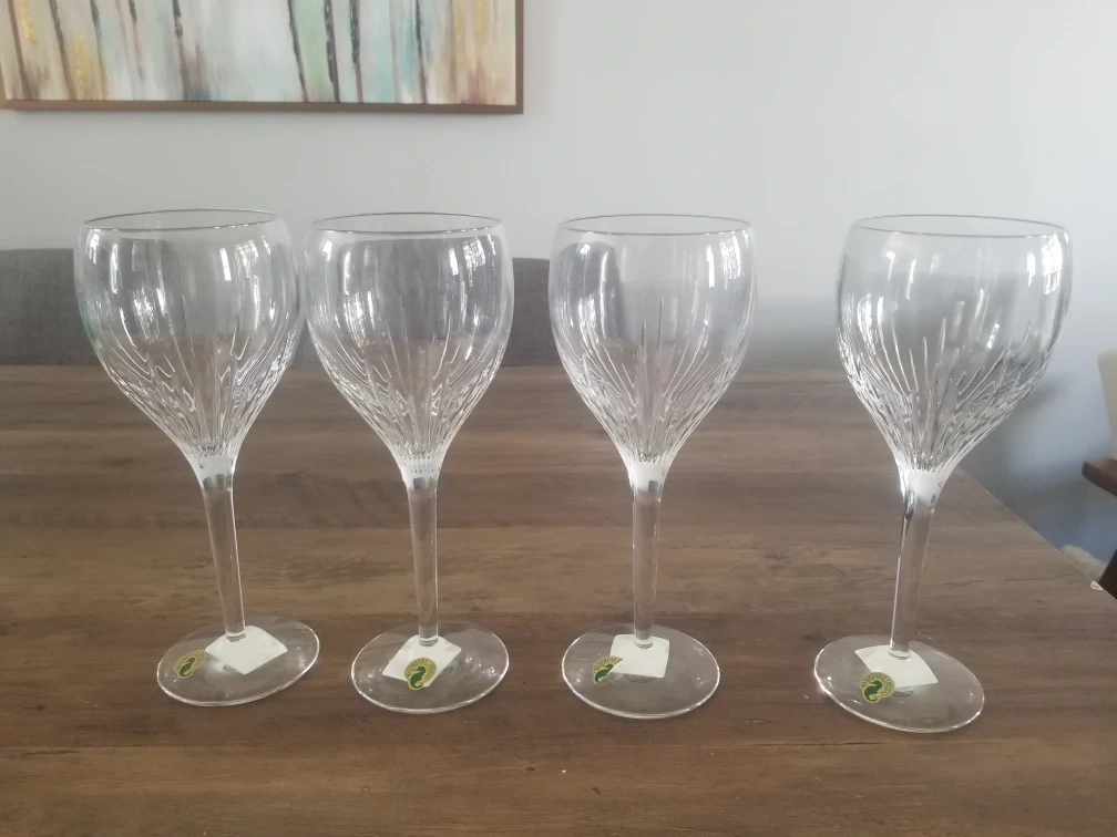 Waterford Crystal Aurora steward (4) Generously oversized, the Aurora Stemware Collection features elegant slender cuts on a pulled stem radiating onto each bowl; Dazzling sparkle is created as the light refracts through the stem, sham and bowl; They are no longer part of the regular production by Waterford (2004-2012). Set of 4 original, never used, still in original package. No damage