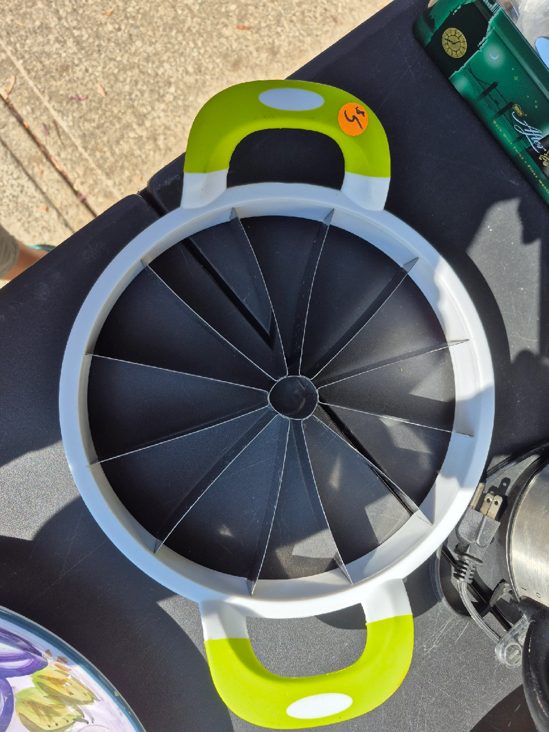 Selling a watermelon slicer with a green handle. It looks like it's in great shape and ready to make slicing watermelons a breeze! still very sharp. location is Bathurst and Dundas street area on Euclid avenue