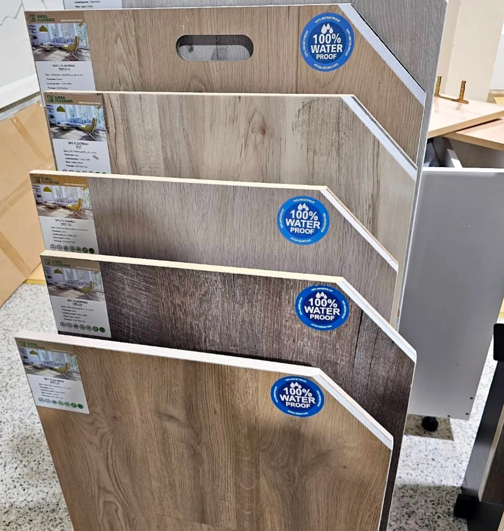10Selling a selection of vinyl flooring samples. These are great for seeing how the colour looks in your space before committing to a full purchase. All are marked as 100% waterproof. Several colours available! 5mm& 7mm