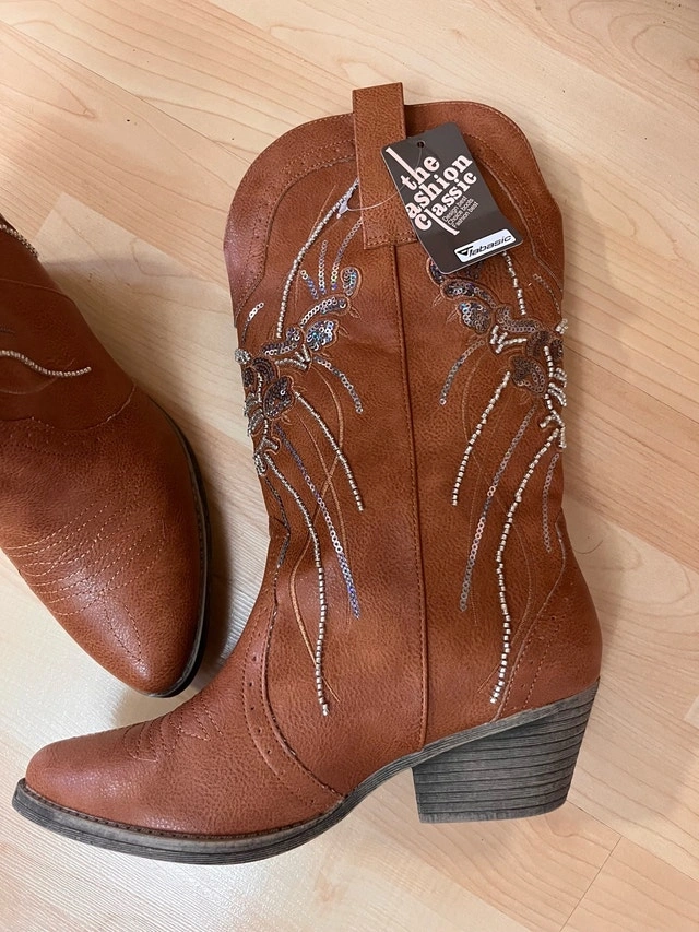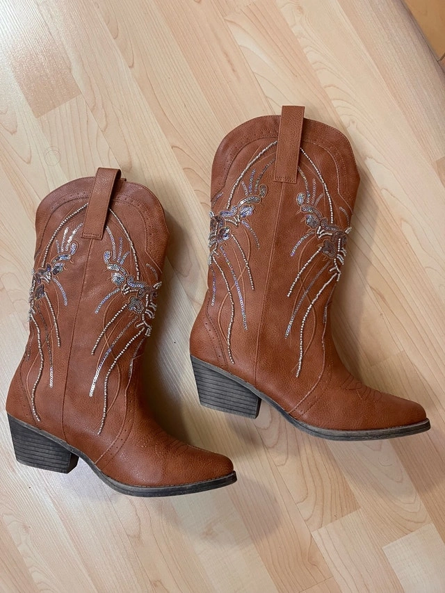 Brand NEW Women's Cowboy Western Style Boots with Sequin and Beads Embellishment. Located near McCowan and Sheppard area in Scarborough. Size 7. Cashless payment and cash accepted.