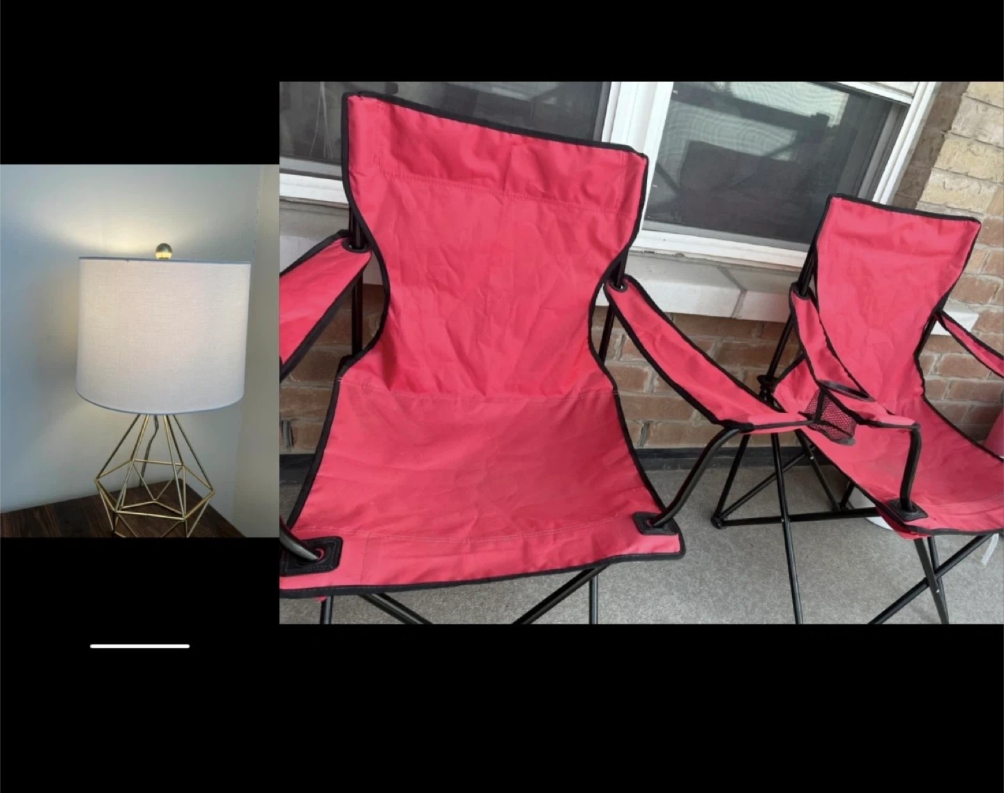 Bundle Red Folding Camp Chairs (2) + bed lamp