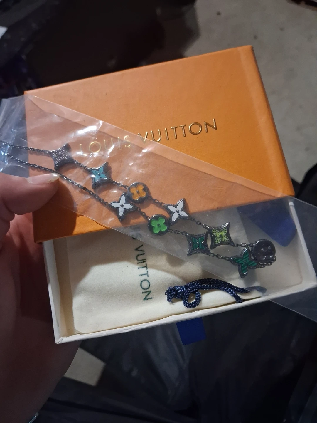 Louis Vuitton necklace with colourful flower charms. Includes original box and dust bag. A lovely accessory for any occasion!