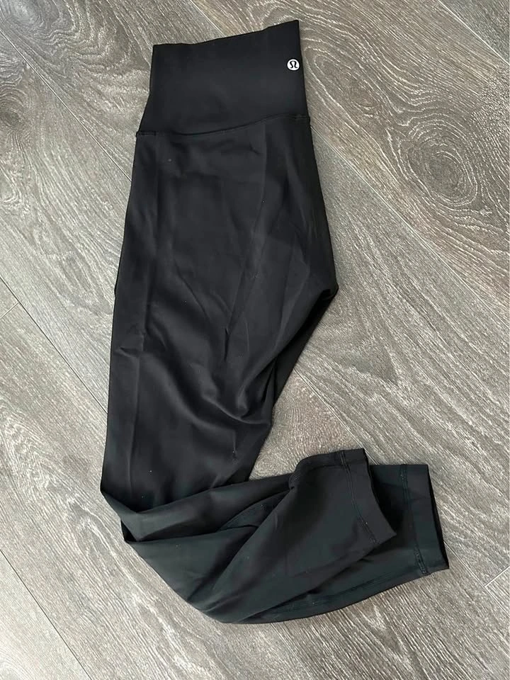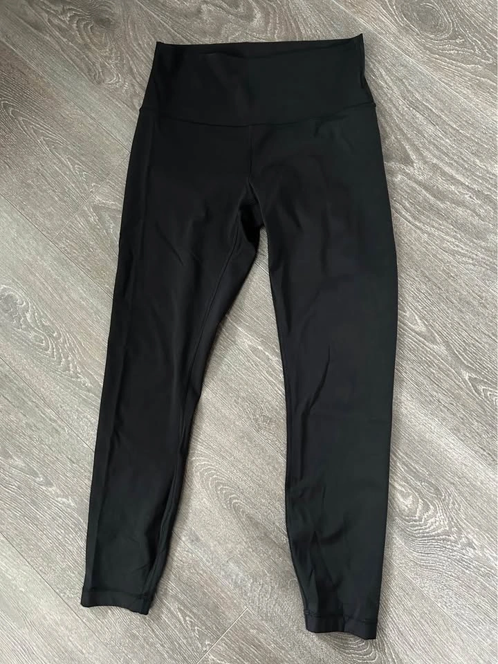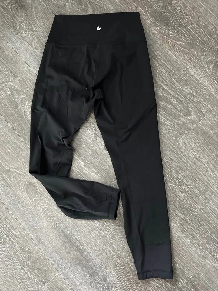 Comfy Lululemon black leggings. Great for working out or just chilling. High-waisted style. Inseam 25”. From a pet and smoke-free home. Located near Yonge and High Tech Road in Oakville.