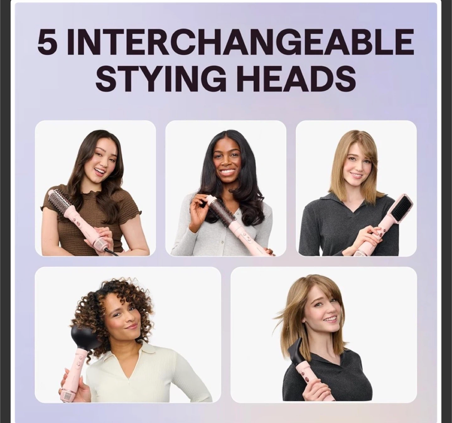 60Get salon-quality blowouts at home with this Wavy Talk 5-in-1 hot air brush! It's designed to dry and style in one step, making your morning routine much easier. Comes with 5 interchangeable styling heads for all your hair needs.