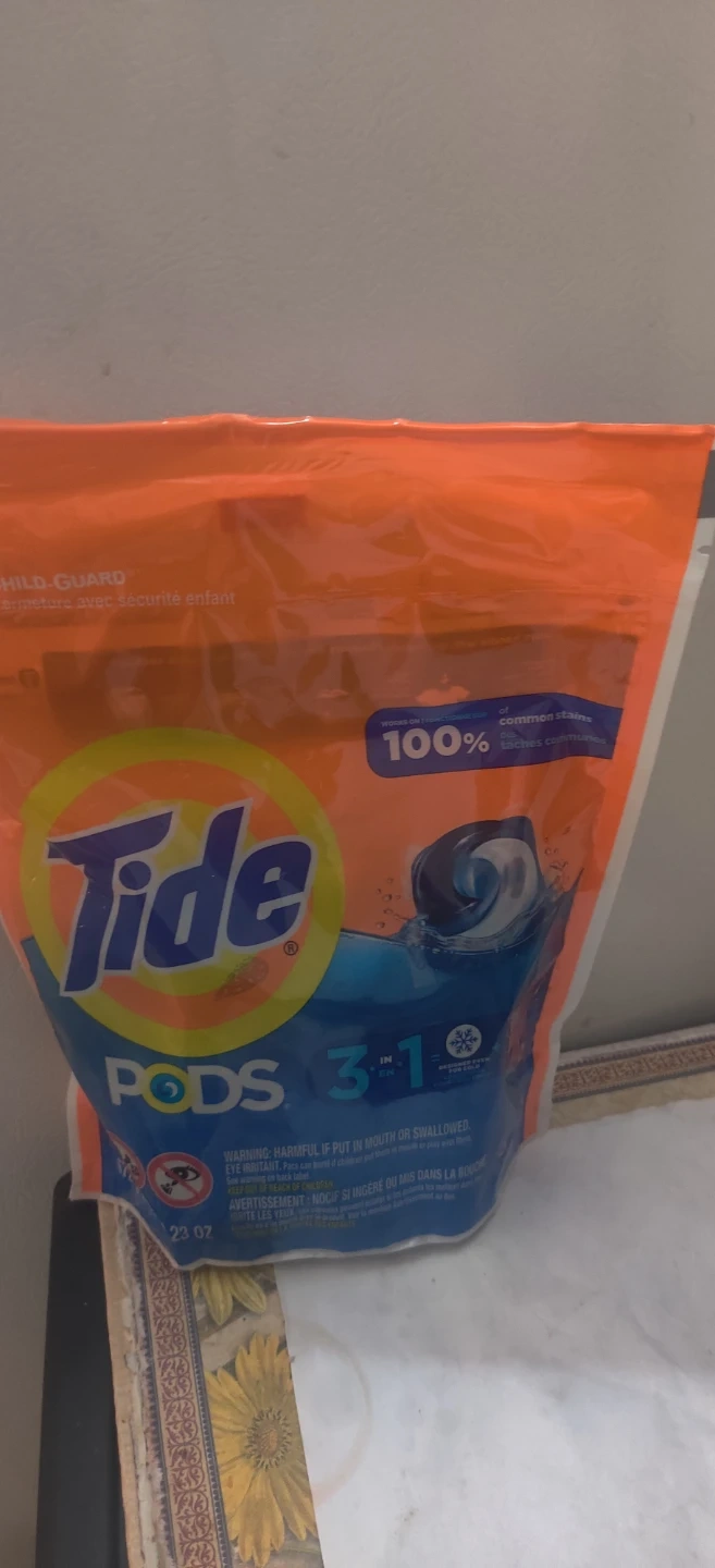 Tide Pods 3-in-1 laundry detergent packs make laundry day easier. This package contains 31 loads. It effectively cleans clothes and tackles common stains.