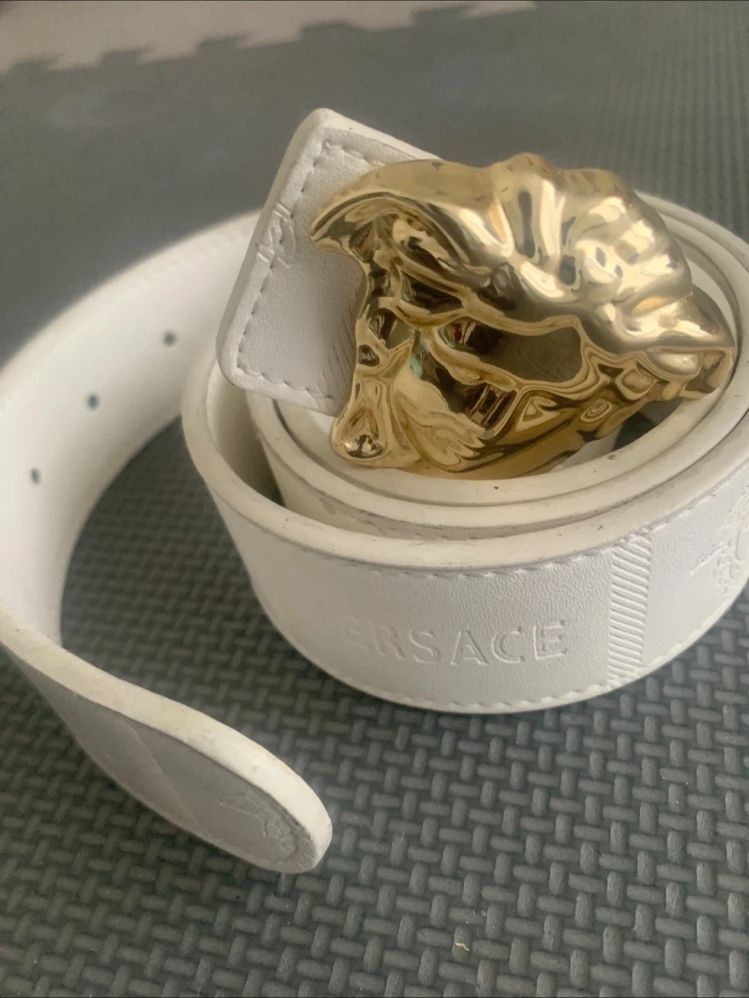 Buy & SellVersace La Medusa Buckle Belt - White LeatherVersace La Medusa Buckle Belt - White Leather$270white leather belt from Versace wit the Medusa head buckle in gold. Leather material.BrandVersaceWHERE TO MEETCheck LocationView MapSELLERJason DesouzaCentral Park100 reviews1 chats·0 favorites·18 viewsSEND CHAT TO SELLERHi Jason Desouza! I’m interested in your listing.Hi Jason Desouza! I’m interested in your listing.Get the Karrot app to chatSign In to chat