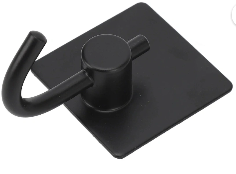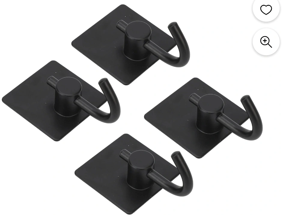 Selling a set of four black adhesive wall hooks. These are great for organizing and decluttering your space without the need for drilling or nails. They're easy to install and can hold a decent amount of weight. Perfect for hanging keys, towels, or light decor items!