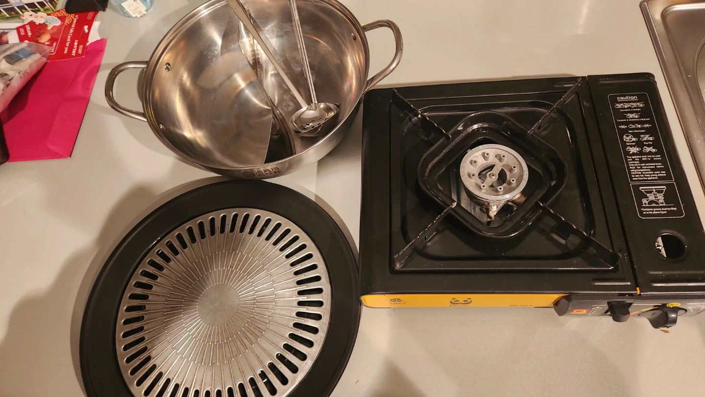 Selling a Panda smokeless BBQ grill plate and hot pot set! It looks like a great set for indoor grilling and hot pot fun. The set includes a hot pot, grill plate, and a portable gas stove. It's in good condition and ready for your next cookout!