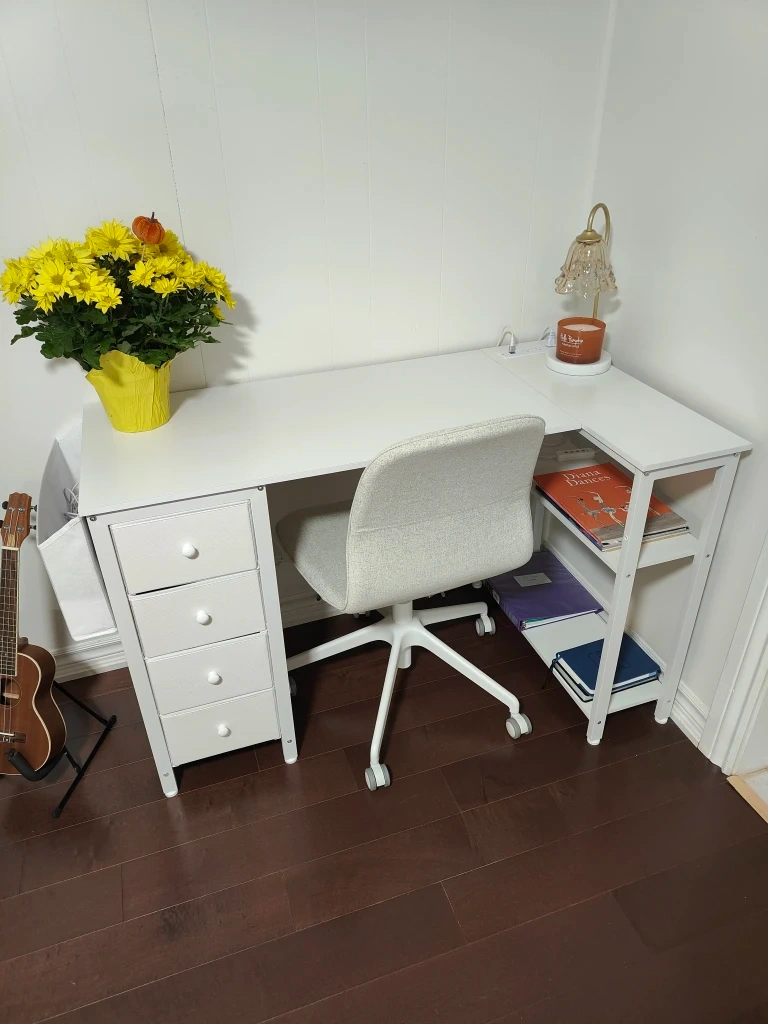 21Selling a new wayfair desk and a new IKEA chair. It's in new condition and perfect for a home office or student space. The desk has handy drawers for storage, and the chair is comfy for long study sessions!