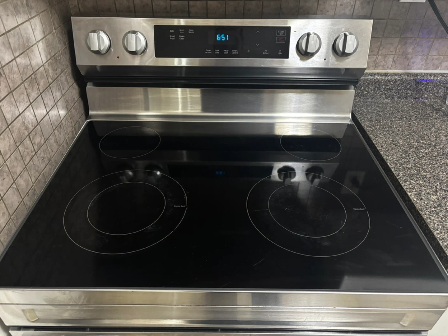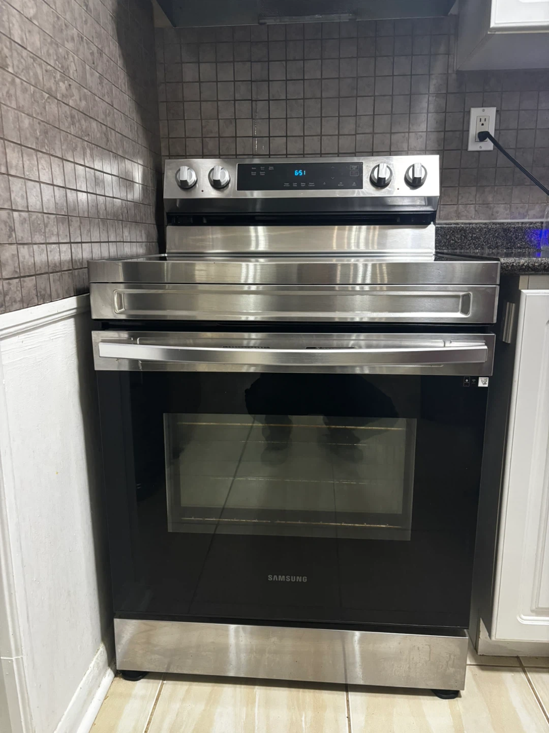 Selling a Samsung electric range in stainless steel. It's in good condition and ready for a new kitchen. Features a smooth cooktop and a spacious oven. Perfect for all your cooking needs!