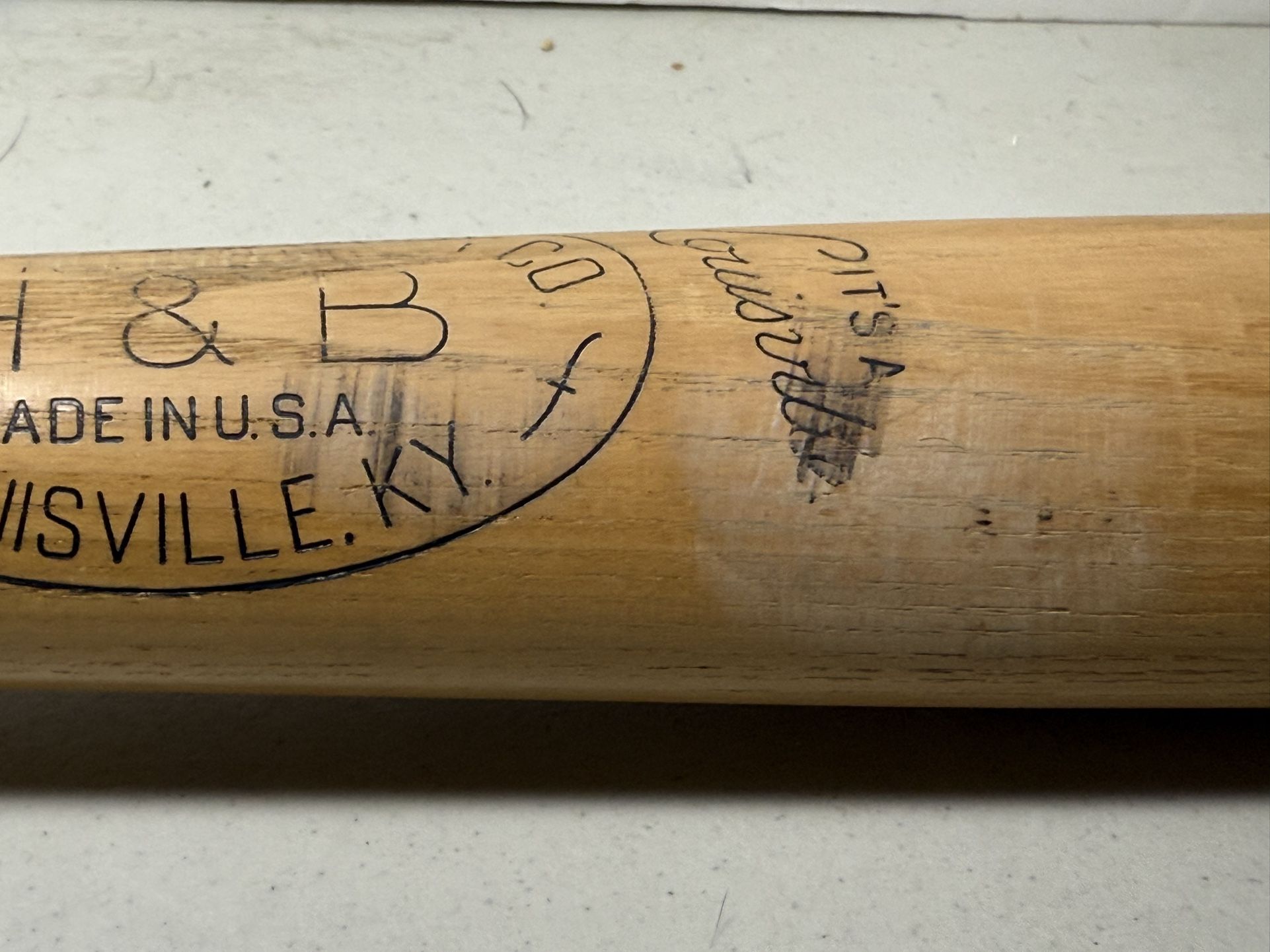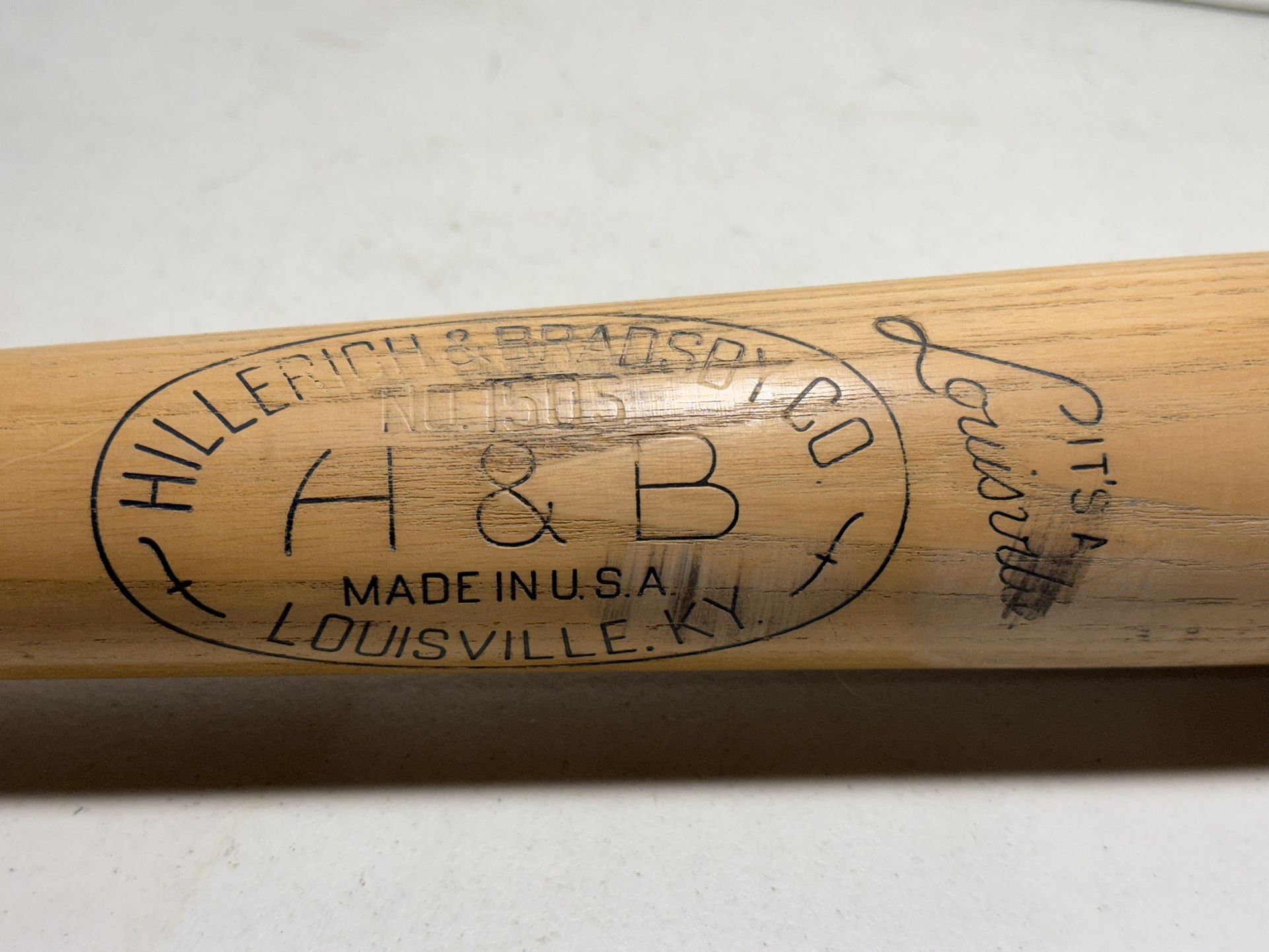 The Grand Slam baseball bat first appears in the Hillerich & Bradsby Co. catalogs sometime in the mid to late 1950's. The bats with the H&B trademark center brand were given the 150 catalog designation, and can be dated up to 1965. This bat is in excellent condition for its age. See pics for details.