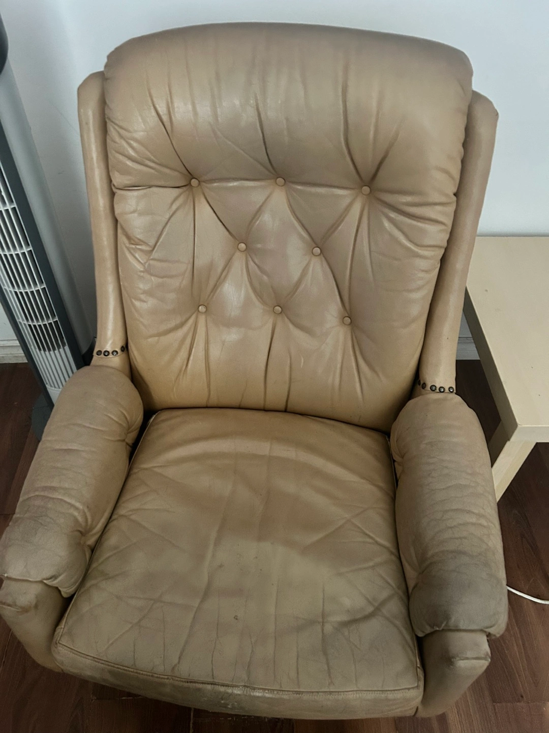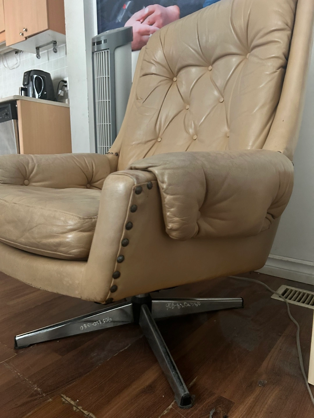 Buy & SellVintage Leather Swivel ChairVintage Leather Swivel Chair$100Beige leather swivel chair. Button tufted back and arms. Chrome base. Mid-century modern style.ConditionLike newWHERE TO MEETKing Street WestView MapSELLERverifiedAMEntertainment District1477 reviews1 chats·0 favorites·47 viewsSEND CHAT TO SELLERHi AM! I’m interested in your listing.Hi AM! I’m interested in your listing.Get the Karrot app to chatSign In to chat