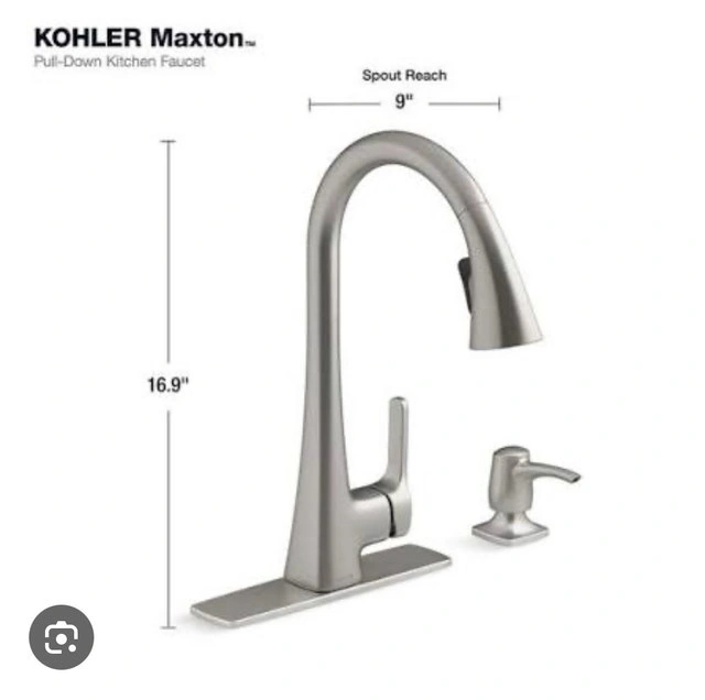 Brand new in box! KOHLER Maxton Touchless Pull-Down Kitchen Faucet. Features Response touchless technology with a sensor under the spout for convenient, germ-free operation. Includes a pull-down spray head with two functions: aerated stream and Sweep® spray. The DockNetik® system securely docks the sprayhead. MasterClean™ sprayface is easy to clean. High-arch spout provides clearance for pots. Temperature memory is included. Box includes: Assembled faucet, supply lines, escutcheon plate, and a matching soap/lotion dispenser. If the ad is up, the faucet is available!