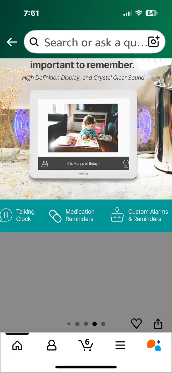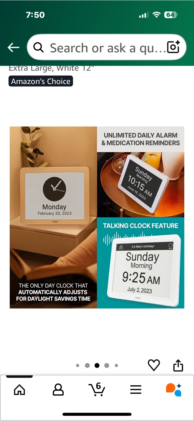 Selling a Robin Clock with Day and Date, perfect for seniors or anyone needing a clear display of the time and date. It has custom event and reminder settings, unlimited alarms, dimming and bedtime schedule options, and can even display images for visual alarms. It was originally bought for $199.95