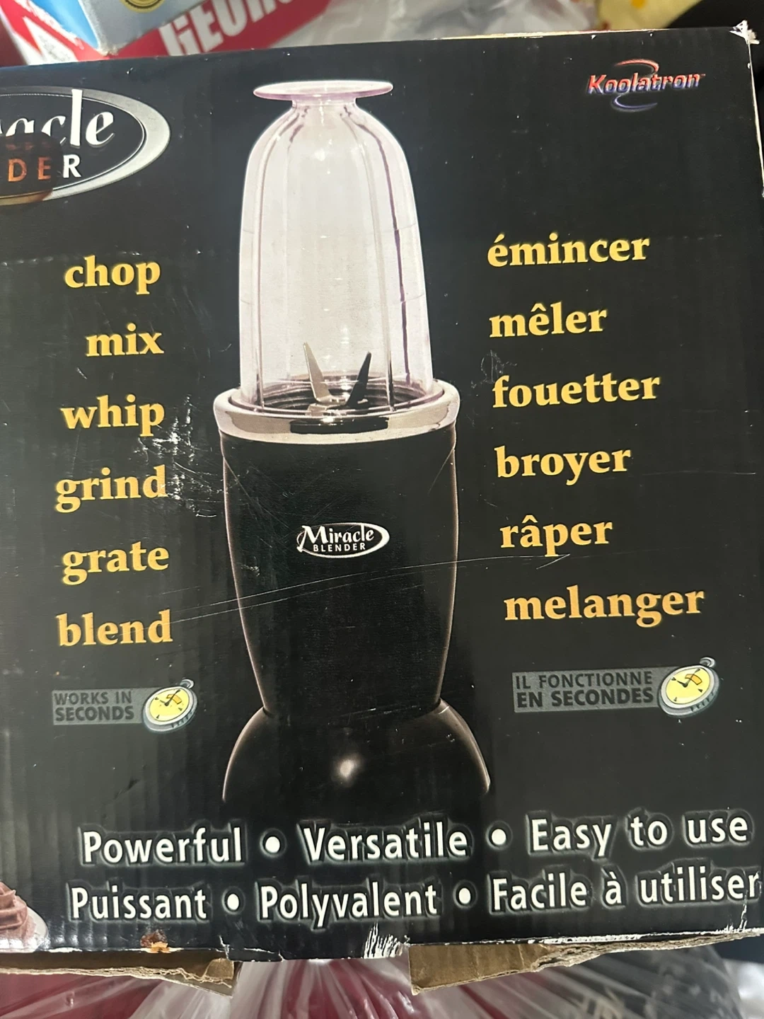 This is a 12-piece Miracle Blender set. It includes a power base, blade, two cups with lids, and a larger carafe. Works in seconds for chopping, mixing, whipping, grinding, grating, and blending.