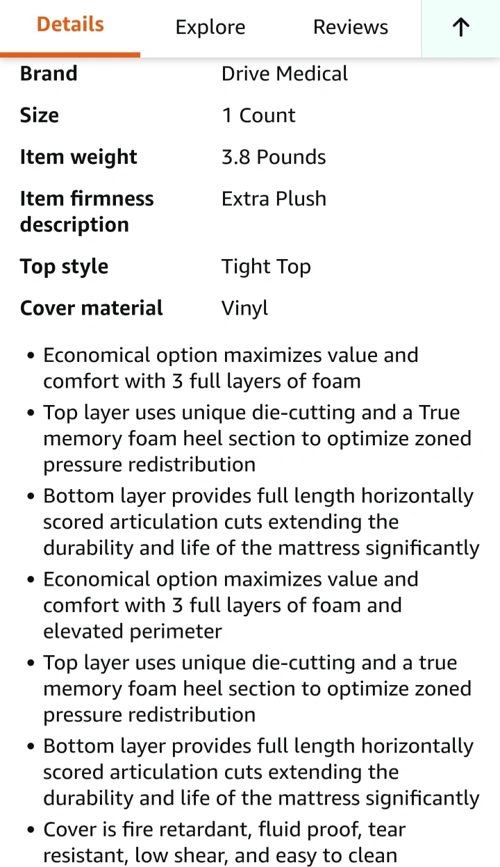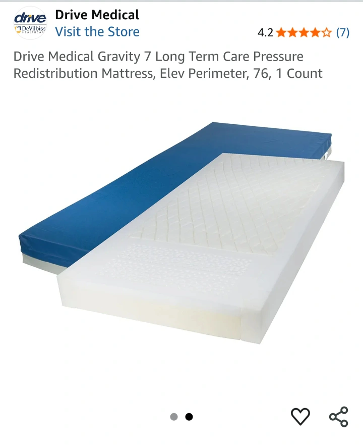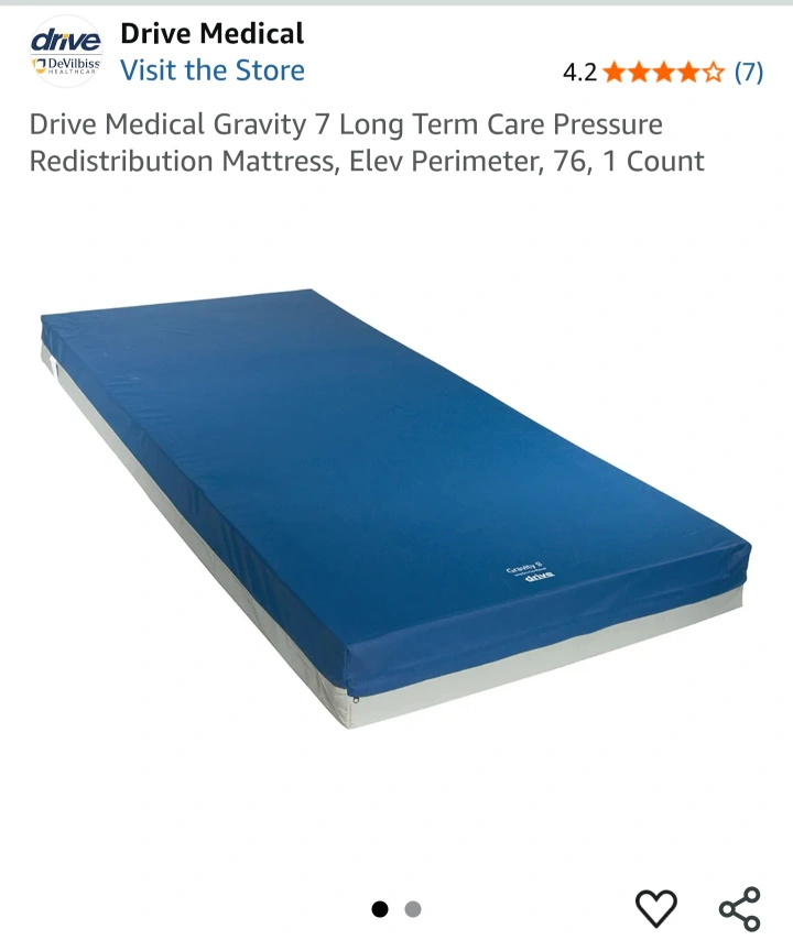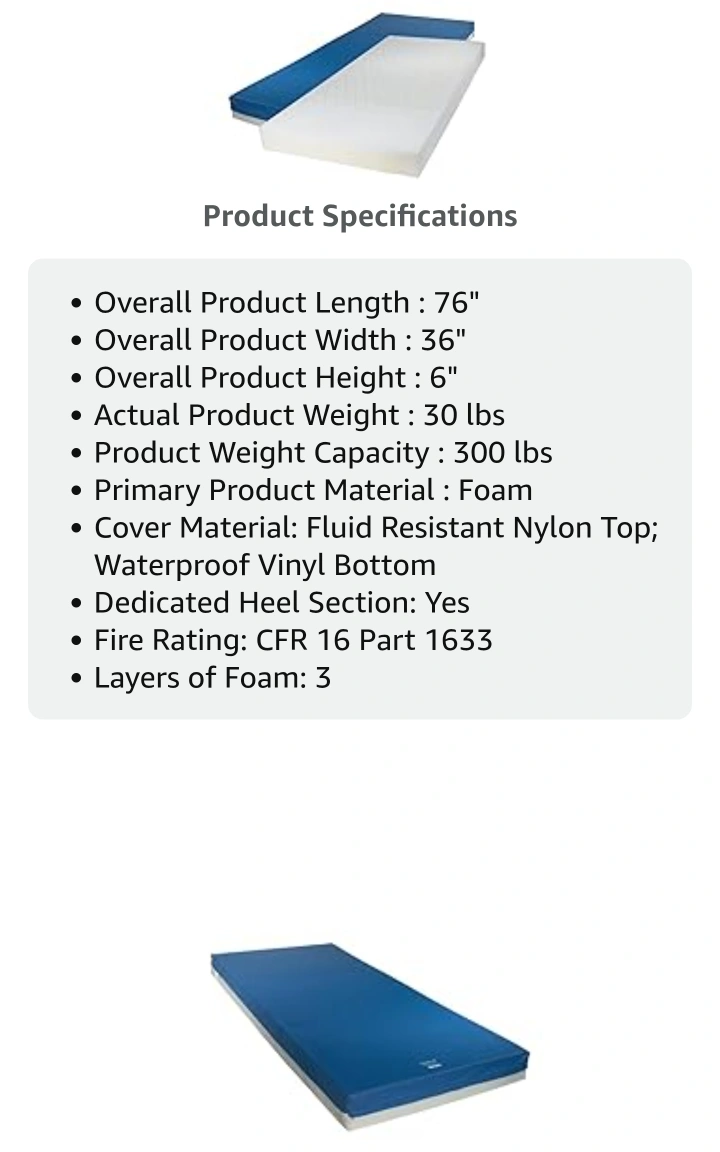This is a Drive Medical Gravity 7 Long Term Care Pressure Redistribution Mattress. It features an elevated perimeter and measures 76" long.