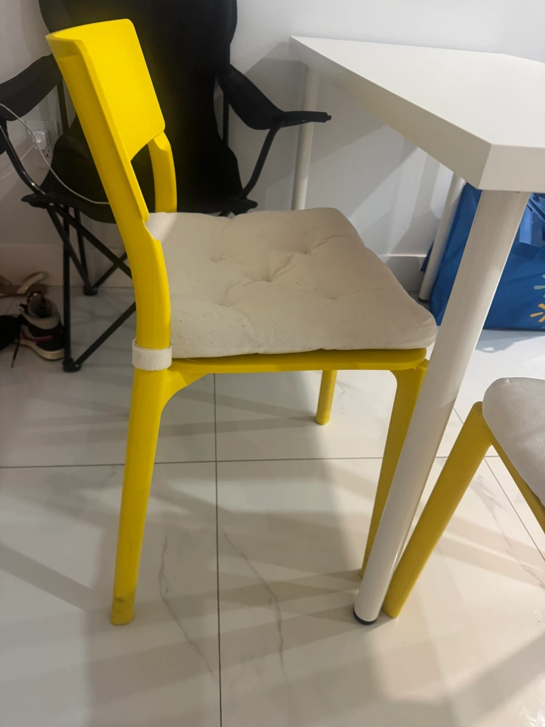 Selling a yellow chair with a comfy cushion seat! It's in great condition and ready for a new home. Perfect for adding a pop of colour to any room