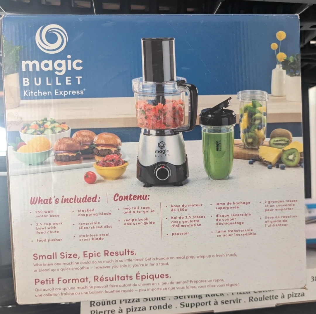 Selling a brand new Magic Bullet Kitchen Express . It is an all-in-one mini food processor and blender BPA free. The box includes: