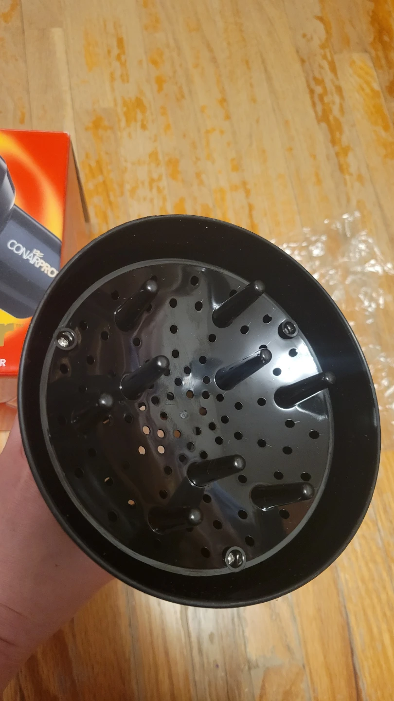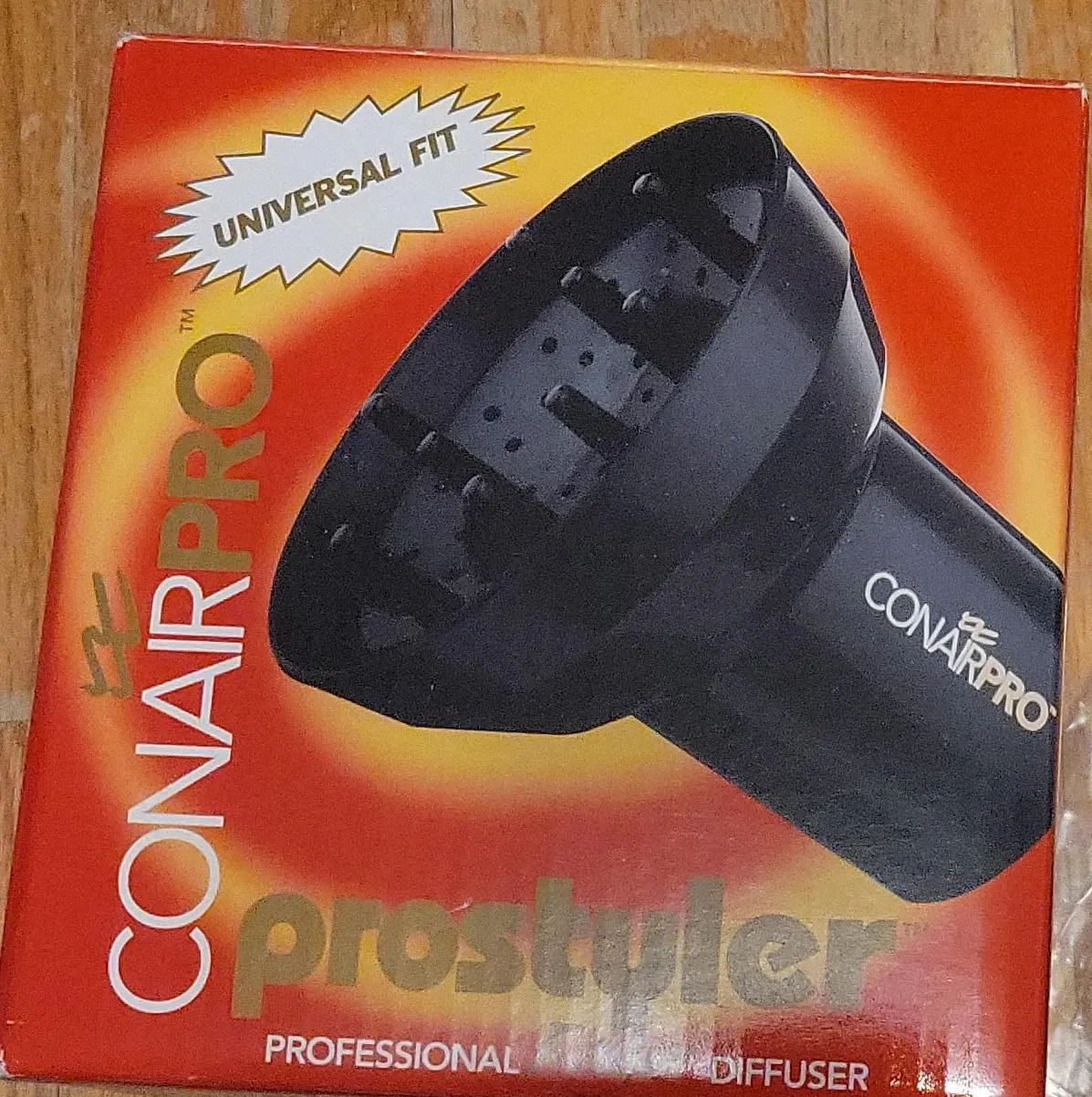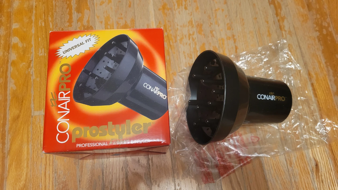This is a Conair Pro Styler professional diffuser. It features a universal fit. Black plastic construction with ventilation holes.
