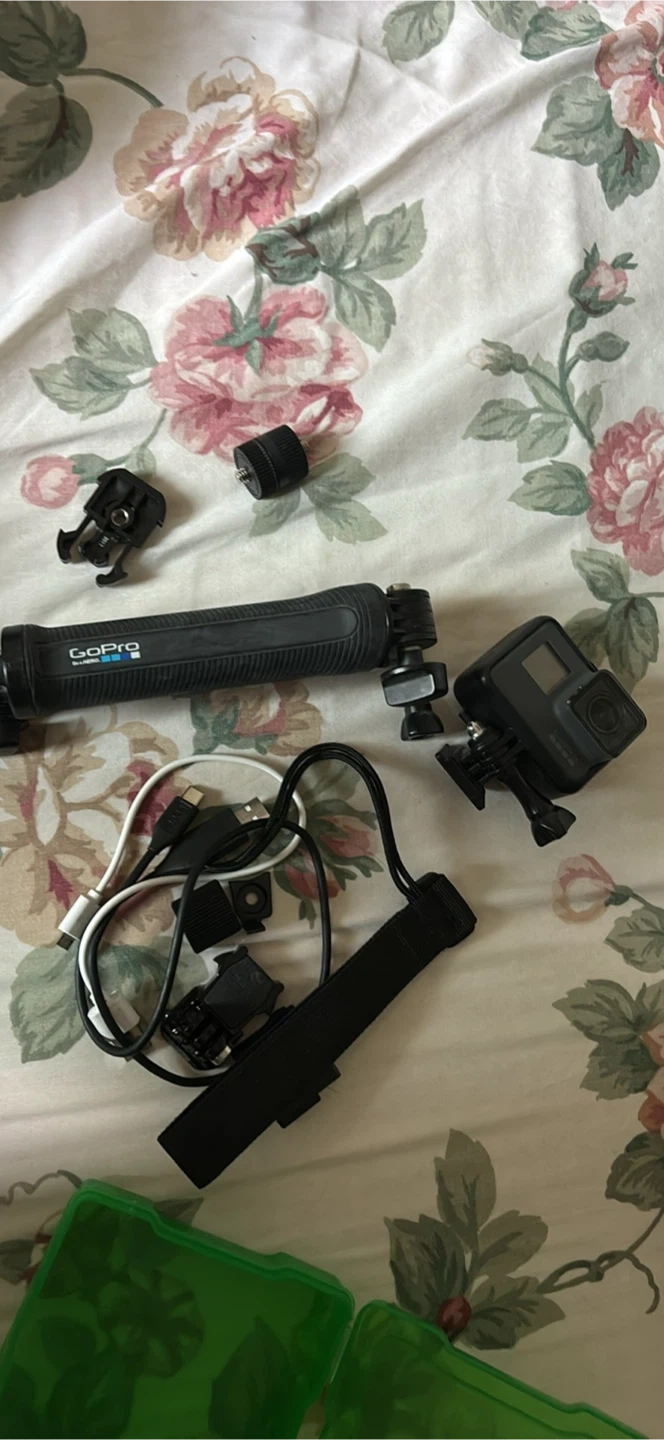 Selling a GoPro HERO5 Black action camera with various accessories, including mounts and cables. It's perfect for capturing adventures and everyday moments. The camera is in good working condition.