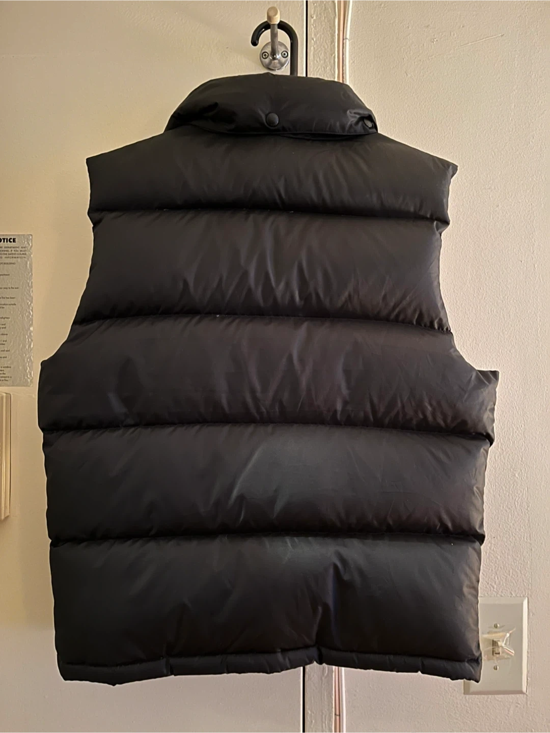 This is a black puffer vest from Polo by Ralph Lauren. It's made with a 100% polyester shell and 100% nylon body lining. The fill is 90% down and 10% waterfowl feathers. It includes a hidden rain hood. Great condition.