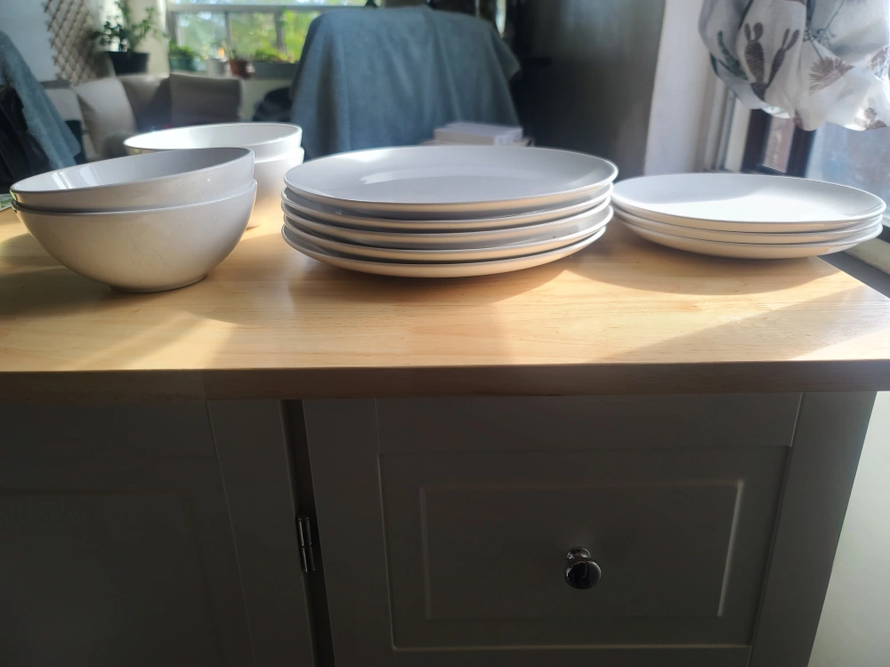 5 large plates, 3 small plates and 4 bowls. $5 for all.
