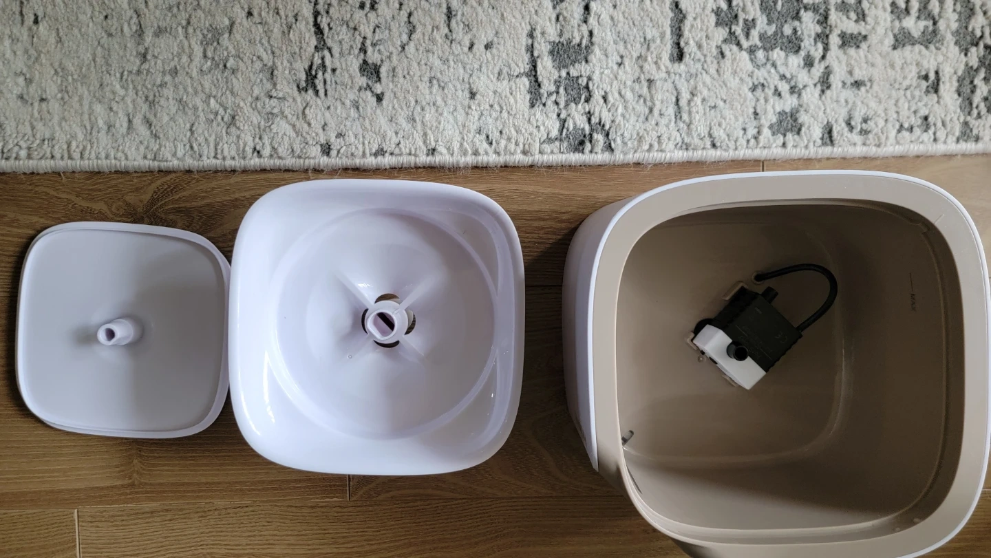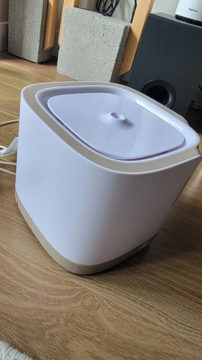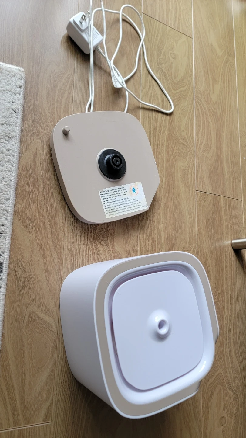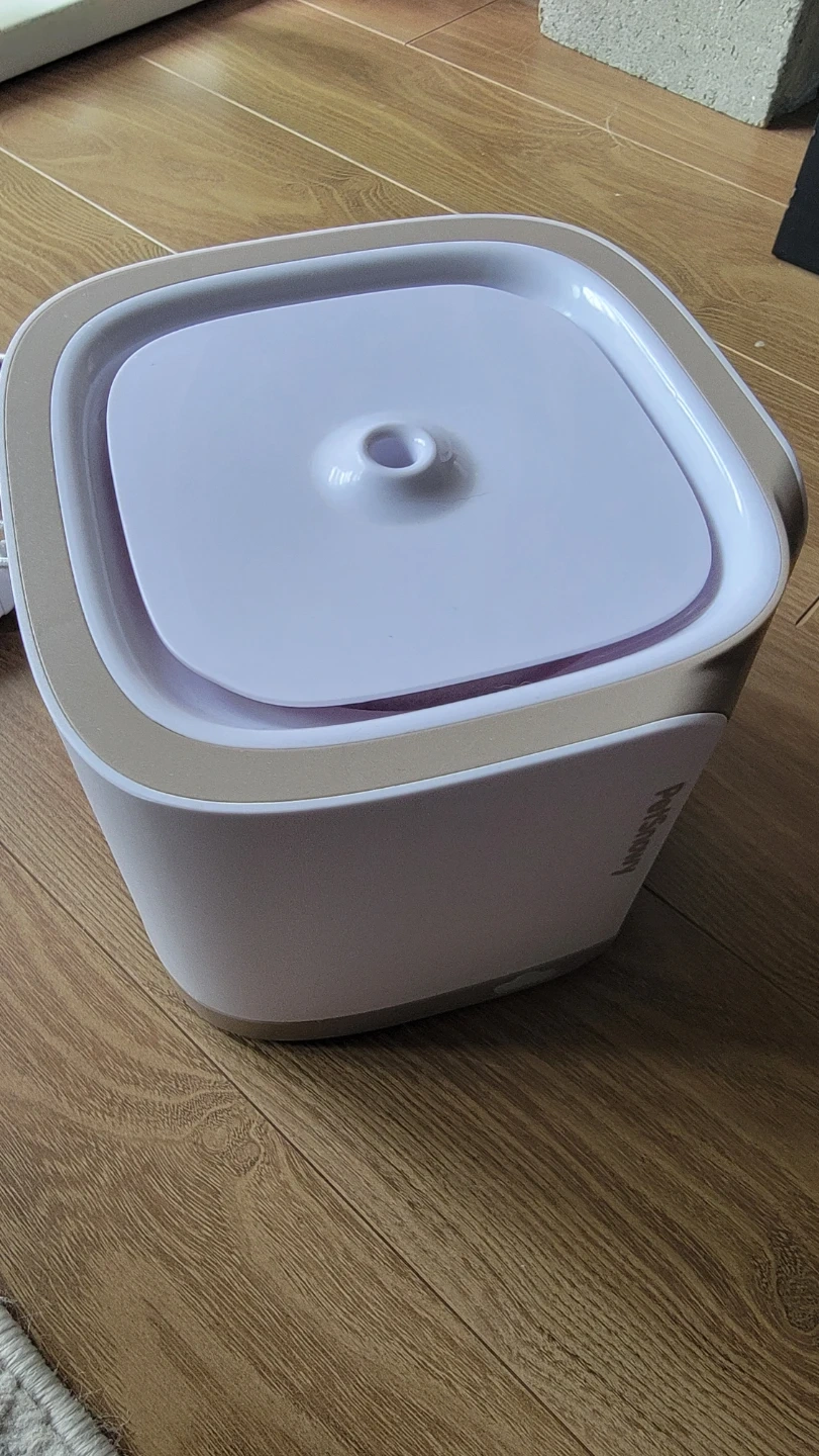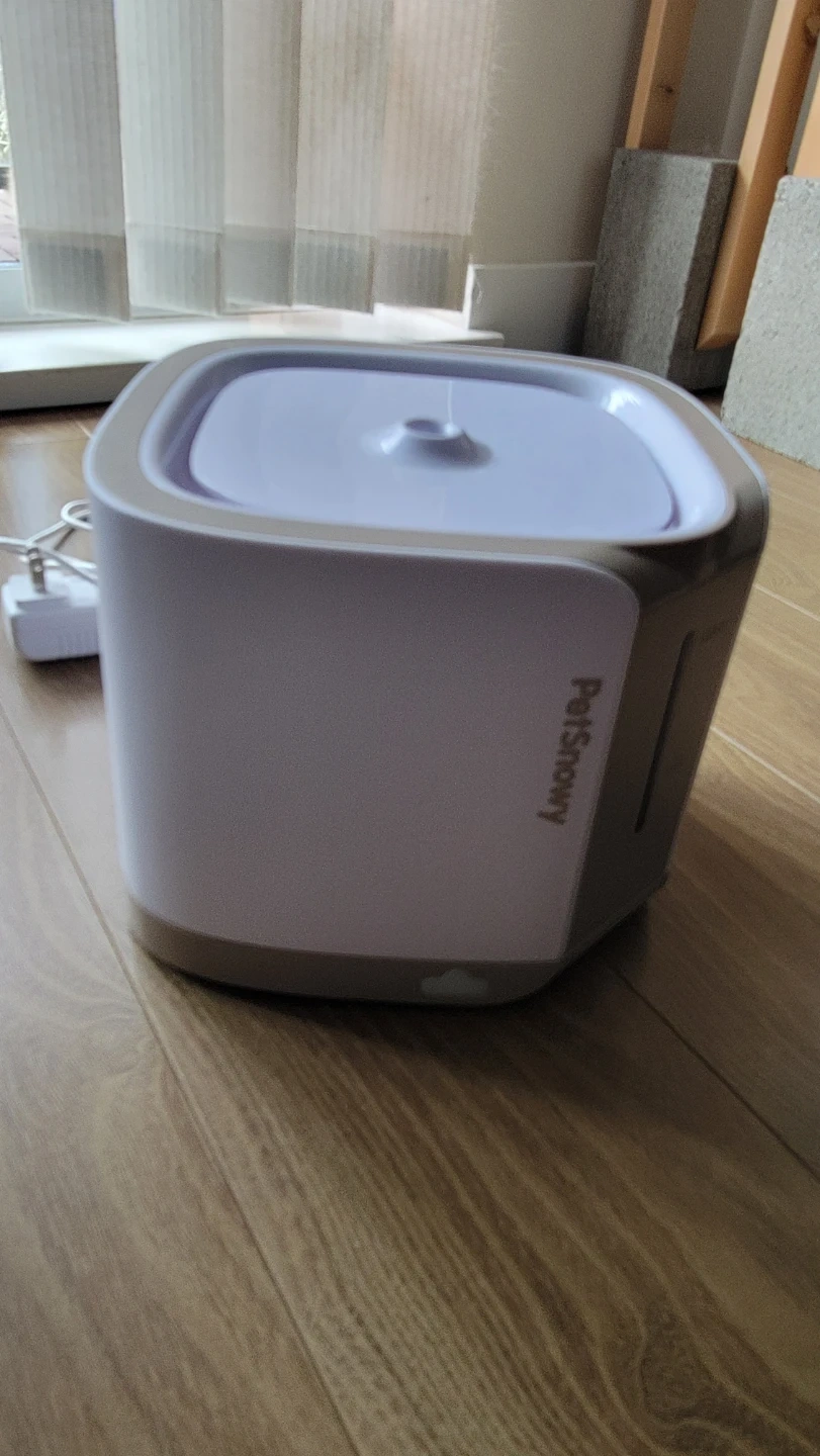 This PetSnowy automatic pet water fountain is designed to keep your pet hydrated. It has a large capacity and comes with a power adapter. It's a great way to encourage pets to drink more water. Comes with a free app to. Monitor water levels and other features remotely. Easy refill and easy clean by simply detaching from the base. It requires circular style filters, they are very cheap on Amazon.