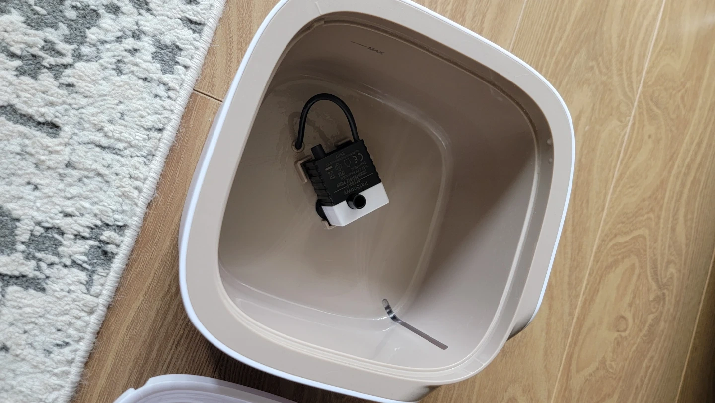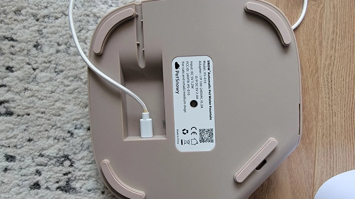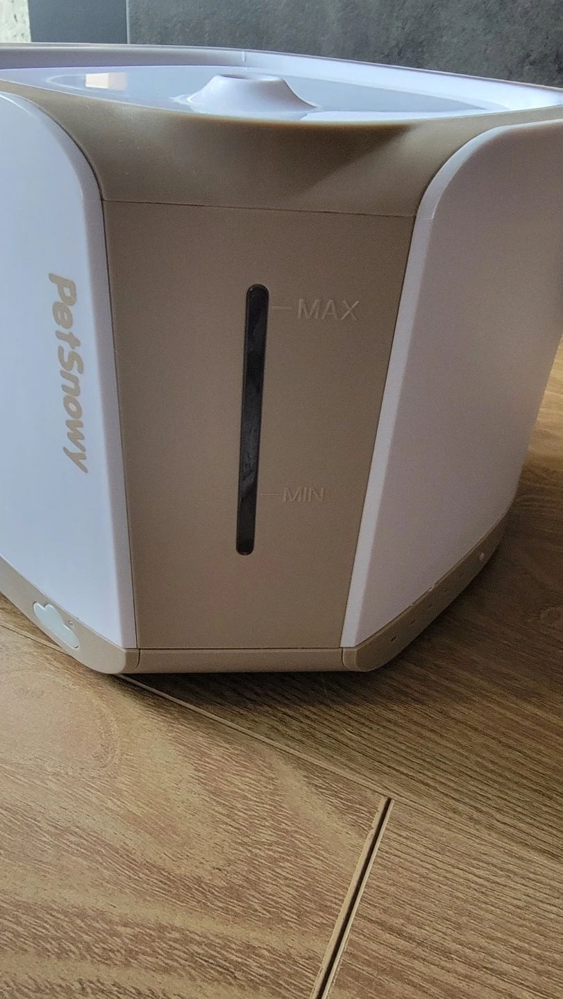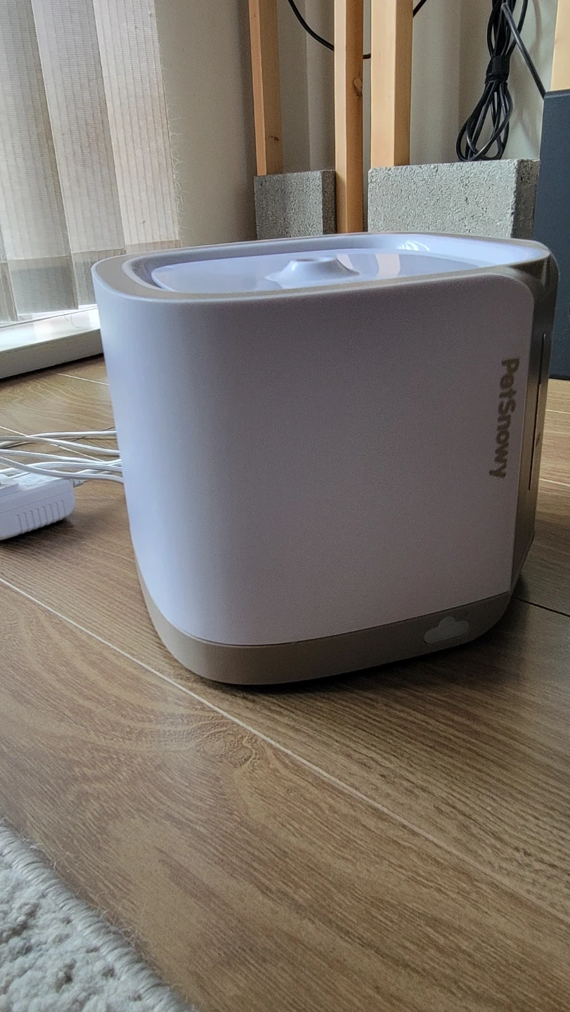 This PetSnowy automatic pet water fountain is designed to keep your pet hydrated. It has a large capacity and comes with a power adapter. It's a great way to encourage pets to drink more water. Comes with a free app to. Monitor water levels and other features remotely. Easy refill and easy clean by simply detaching from the base. It requires circular style filters, they are very cheap on Amazon.
