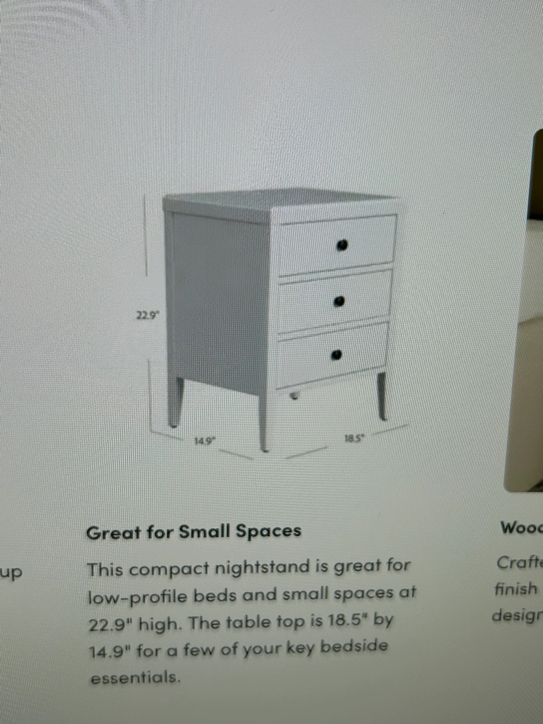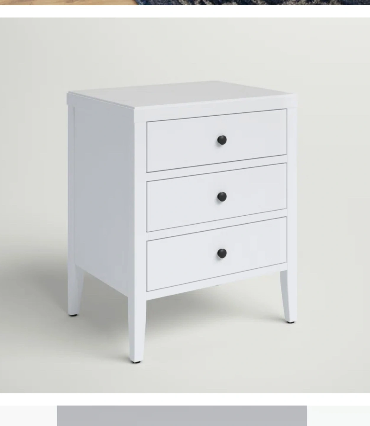 Two white nightstands with three drawers. Measurements included in photos. Like new. Can be used as night stands or end tables. Classic, contemporary design.
