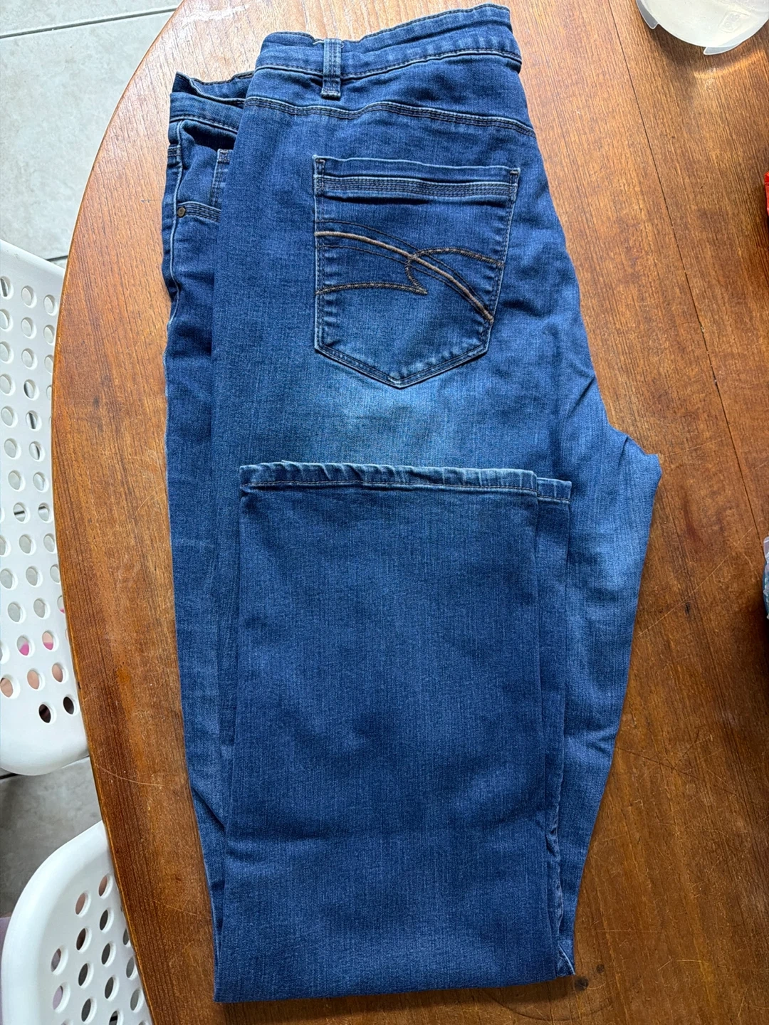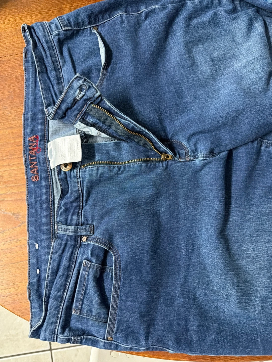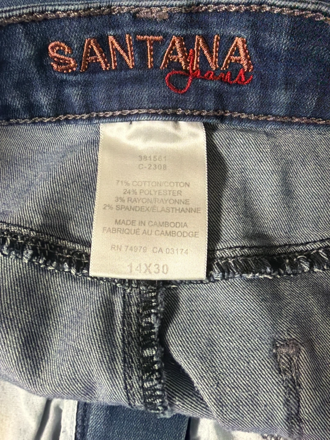 These Santana Jeans are a classic blue denim. They're made with a blend of cotton, polyester, rayon, and spandex for comfort and stretch. Size 14x30.