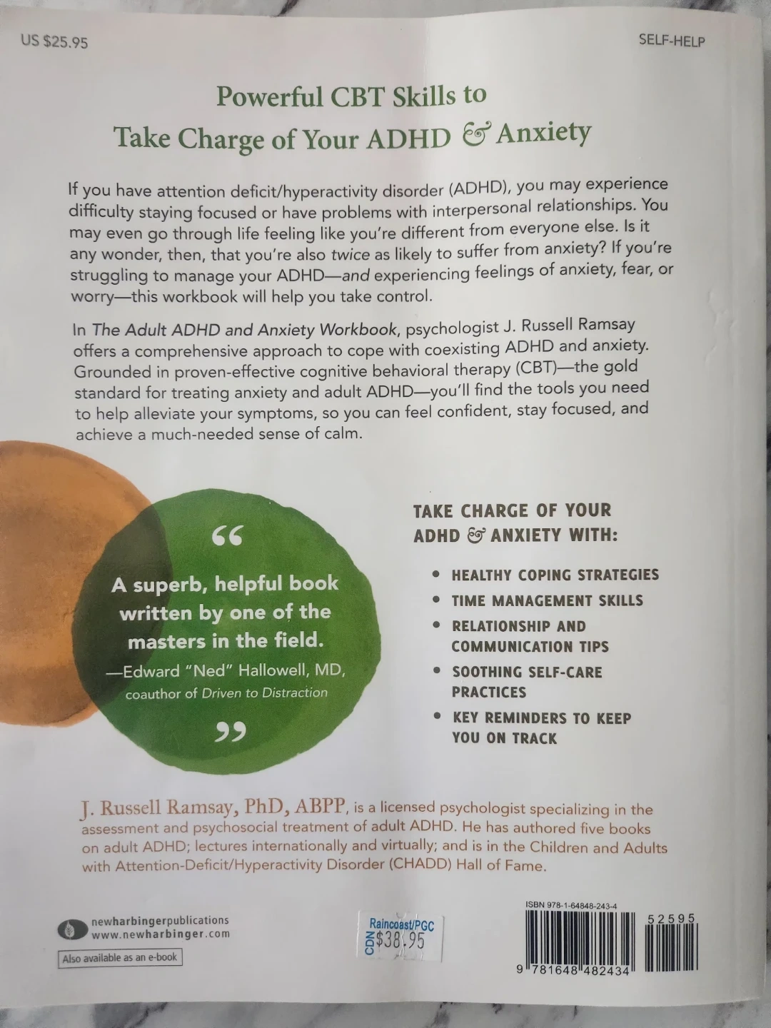A New Harbinger Self-Help Workbook offering cognitive behavioral therapy skills to manage stress, find focus, and reclaim your life. It's written by J. Russell Ramsay, PhD, a psychologist specializing in adult ADHD (Retails at $38.95).