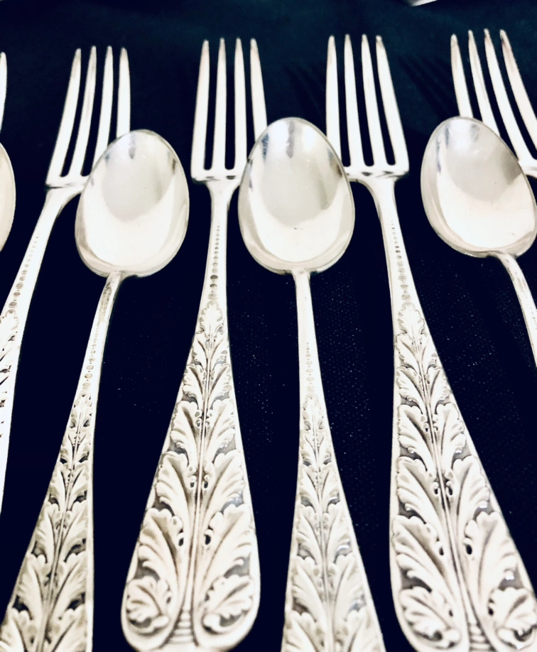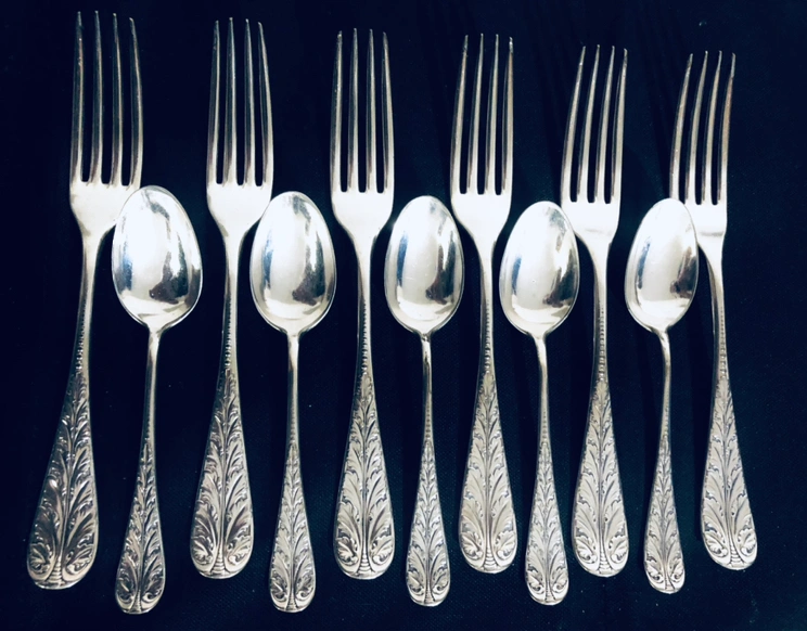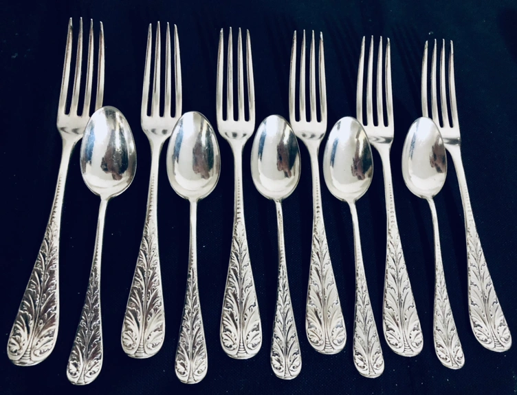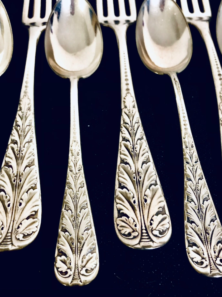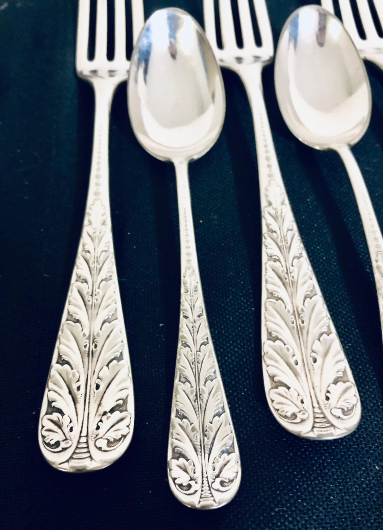 Antique White Gold Plate Silverware Set by Hamilton Rare