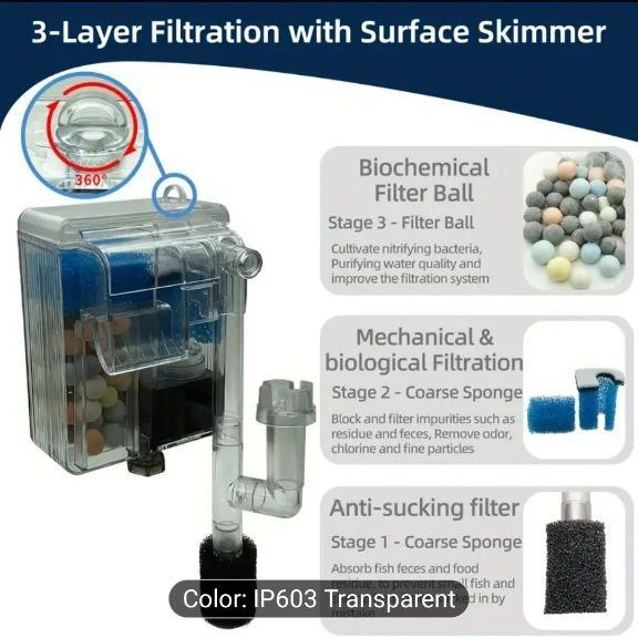 1 Set of USB fish tank filters, 66GPH 3W, The Suspended Filter Pump And External Aerator Pump, As Well As The Silent Water Pump And Clean Water Circulation Pump, Are Suitable for The Ecological Beauty of Aquarium And Active Fish