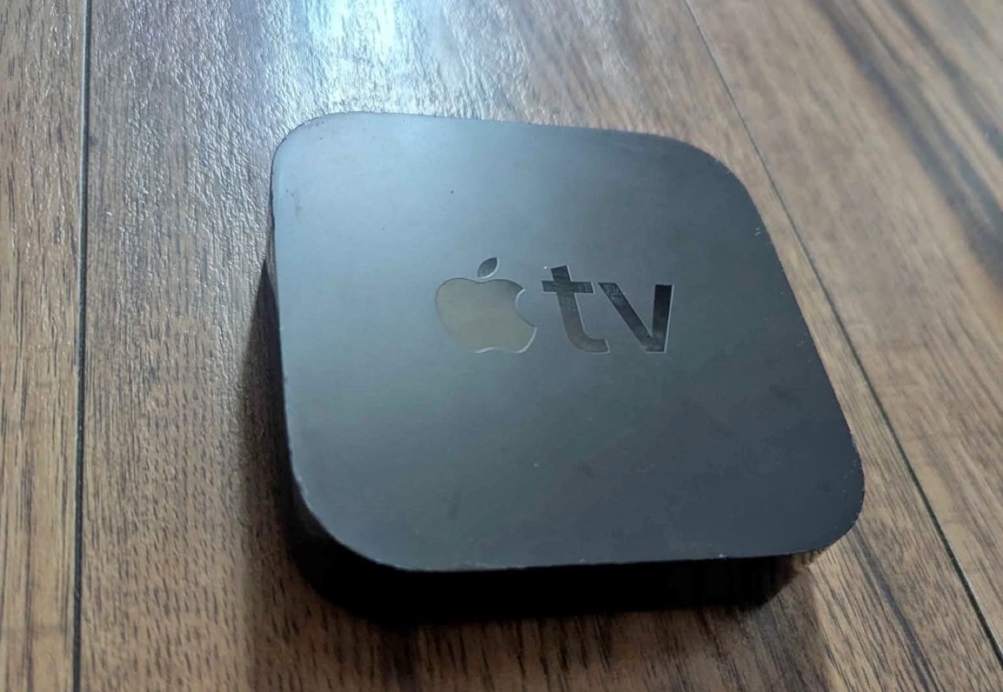 Pre-owned Apple TV box. Compact design. Good for streaming movies and shows.
