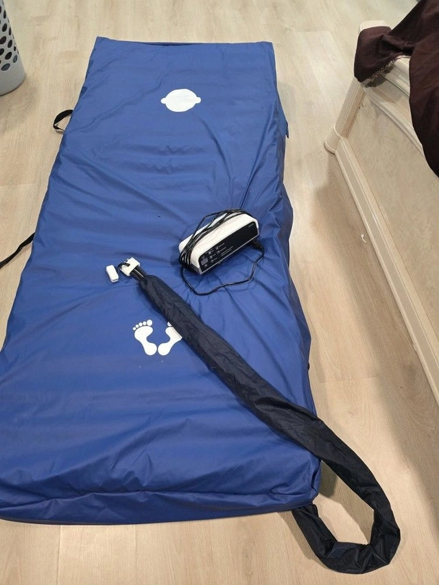 For sale is a new low-air-loss pressure air mattress (brand: vive) and highly customizable digital pump. This item is completely unused… It has only been taken out of the original manufacturers box to be tested. This active-mattress replacement system provides both alternating pressure and low air loss to optimize pressure redistribution, shear/friction reduction, and microclimate control. For home use only. The 16 individual air bladders can be customized to whatever firmness or softness desired for the mattress user via the pump. The dimensions are 36”x 80” and the height is 8”. Message for any questions. A fully electric adjustable bed (with side rails) is also available for extra $300.