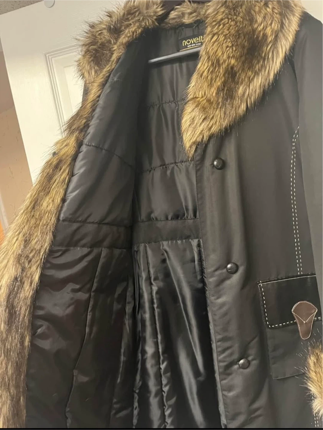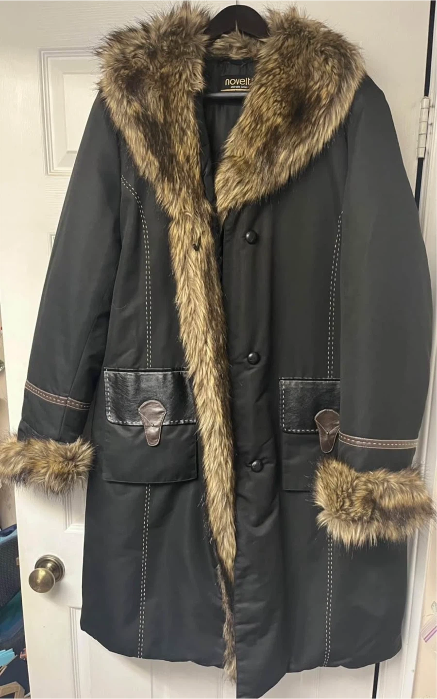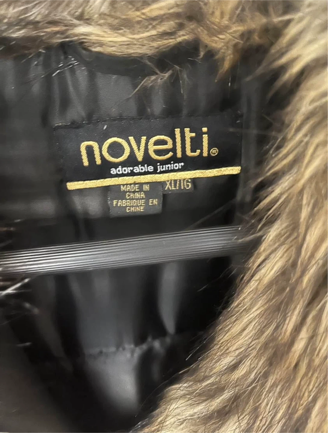 Selling a Novelti Adorable Junior coat in size XL/TG. Warm only once, it's a stylish black coat with faux fur trim. Perfect for the cold winter, keeping warm and looking fashionable!