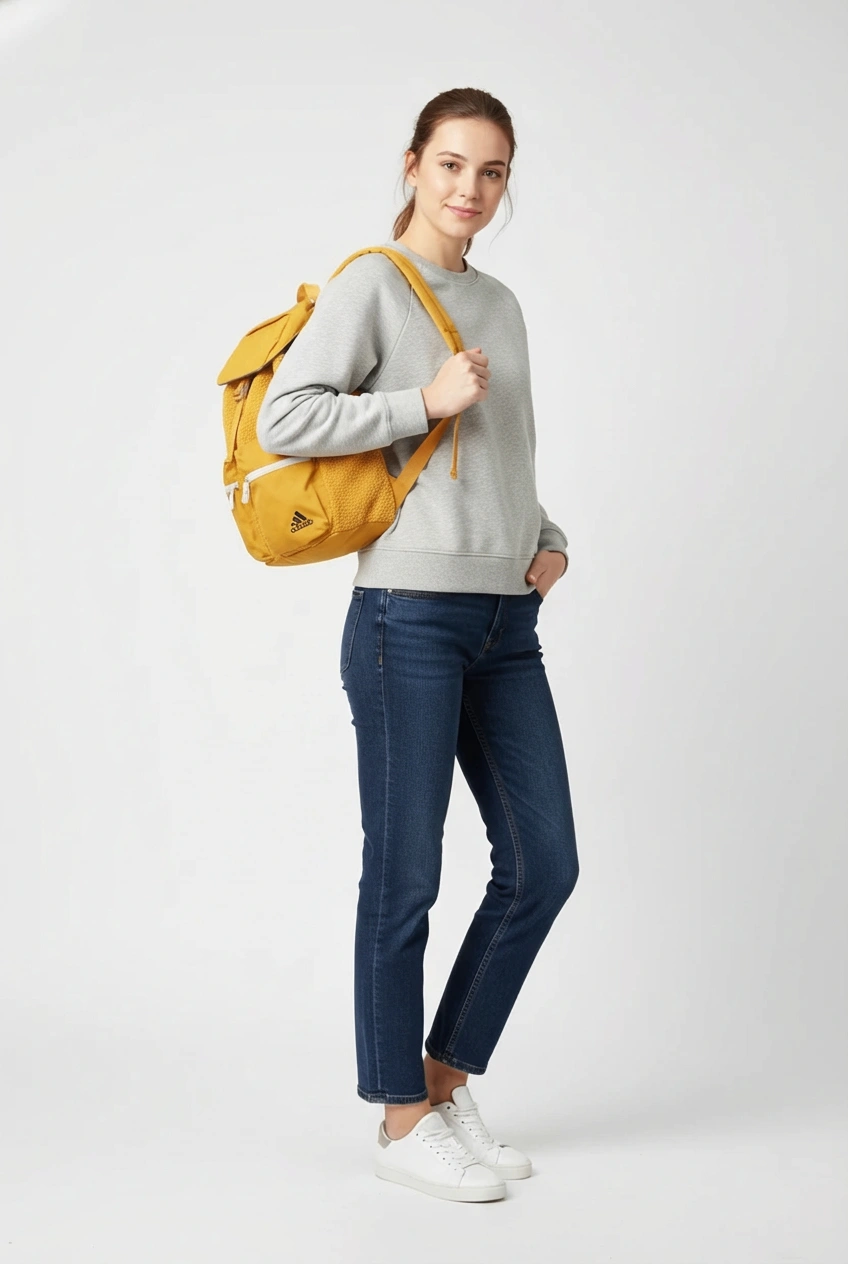This is an Adidas sherpa fleece backpack in a vibrant yellow colour! It's a stylish and functional bag that's perfect for everyday use or outdoor adventures. The sherpa fleece lining adds a cozy touch, making it a unique and eye-catching accessory