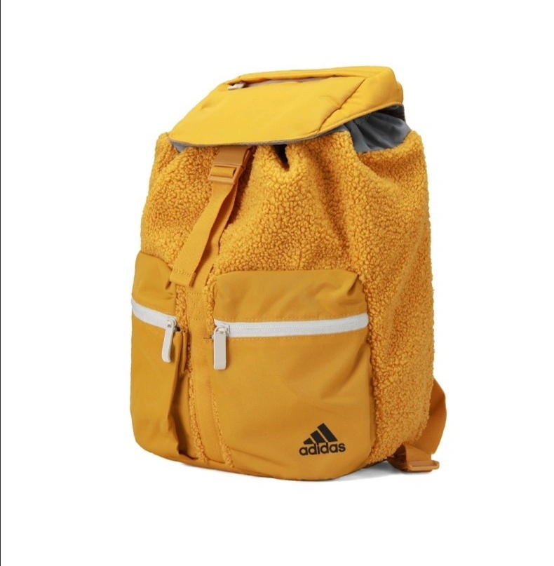This is an Adidas sherpa fleece backpack in a vibrant yellow colour! It's a stylish and functional bag that's perfect for everyday use or outdoor adventures. The sherpa fleece lining adds a cozy touch, making it a unique and eye-catching accessory