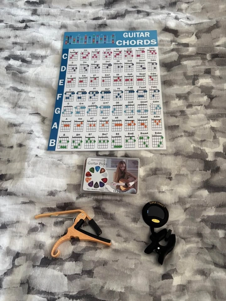 Purchased new late 2024. Used for a few lessons. A few scratches below the pickguard, otherwise, looks and plays excellent. Includes gigbag, stand, tuner, picks, capo, strap, music stand - everything you need to get started. $625 firm. Pickup in High River or South Calgary.