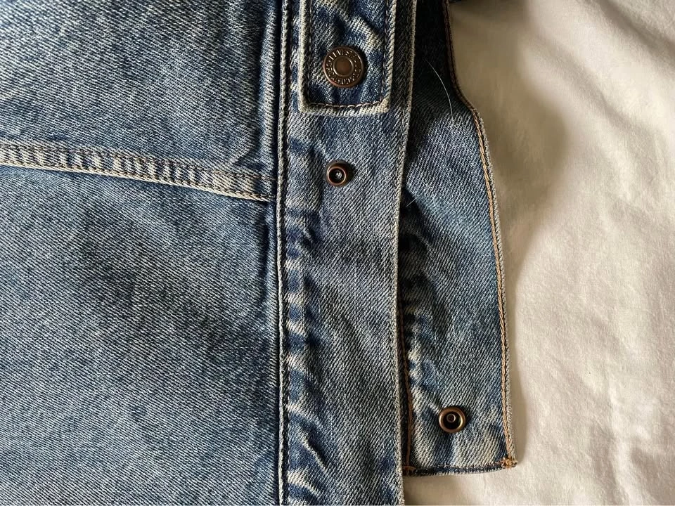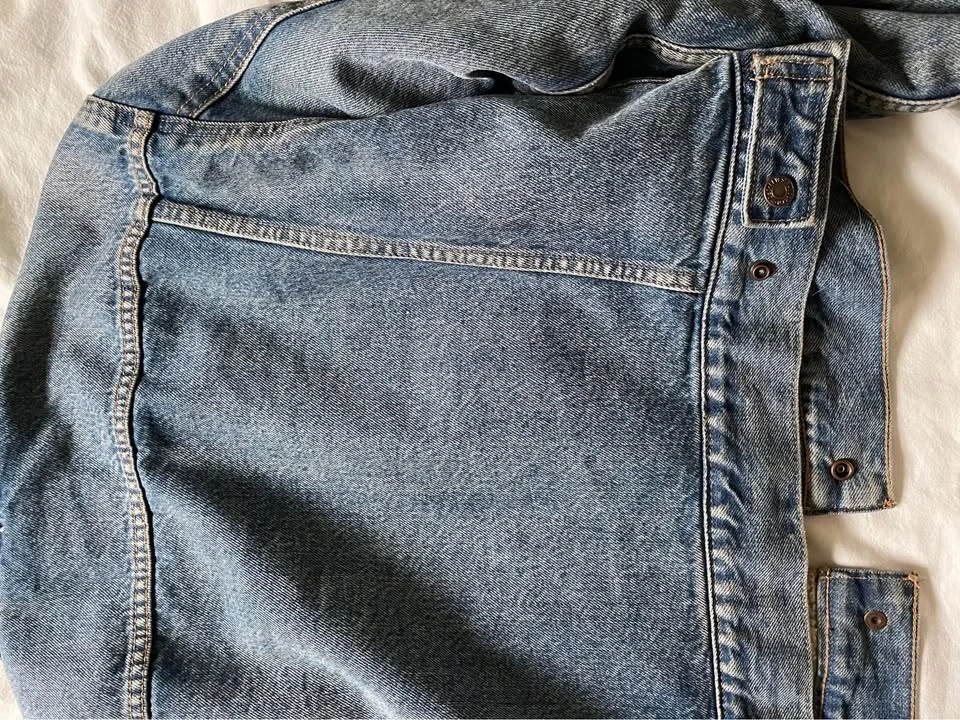 Oversized cropped denim jacket, size L (fits like a medium). It has a cropped, boxy fit. Comes with a collar attachment. No flaws. Pick up in Bolton.