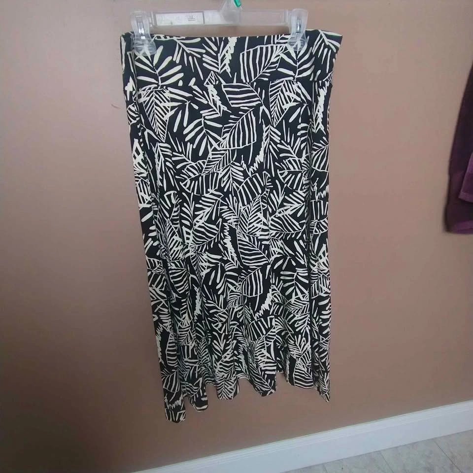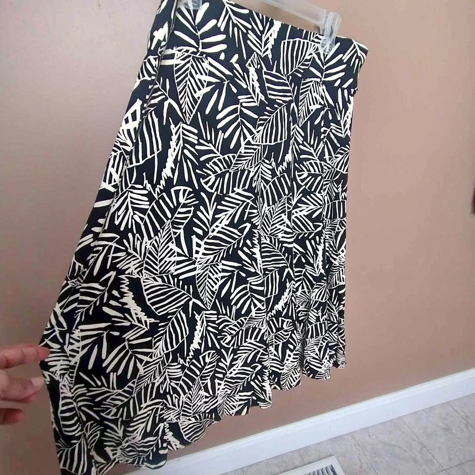 Size M. Length 29. PU rockyridge nw. Elevate your wardrobe with this chic black skirt featuring a bold white leaf pattern. Designed with a flattering high waist and a flowy silhouette, it’s perfect for both casual outings and dressed-up looks. Eye-catching monochrome leaf print. Lightweight, breathable fabric. Comfortable fit with a flattering drape. Easy to pair with tops, blouses, or crop tees.