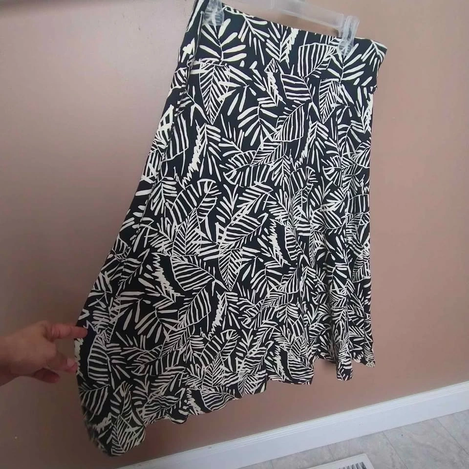 Size M. Length 29. PU rockyridge nw. Elevate your wardrobe with this chic black skirt featuring a bold white leaf pattern. Designed with a flattering high waist and a flowy silhouette, it’s perfect for both casual outings and dressed-up looks. Eye-catching monochrome leaf print. Lightweight, breathable fabric. Comfortable fit with a flattering drape. Easy to pair with tops, blouses, or crop tees.
