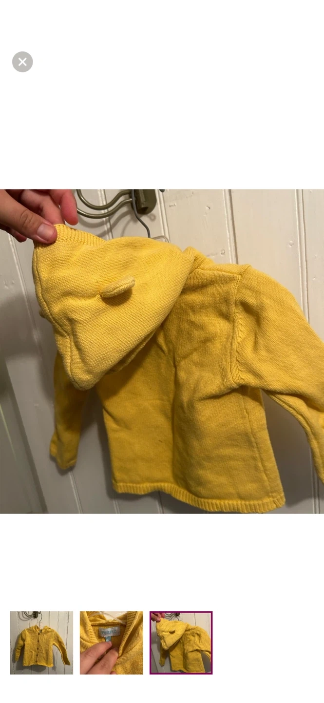 Pekkle brand. Yellow knit bear ear hooded cardigan. Yellow in colour. Size 24m. Brand new condition