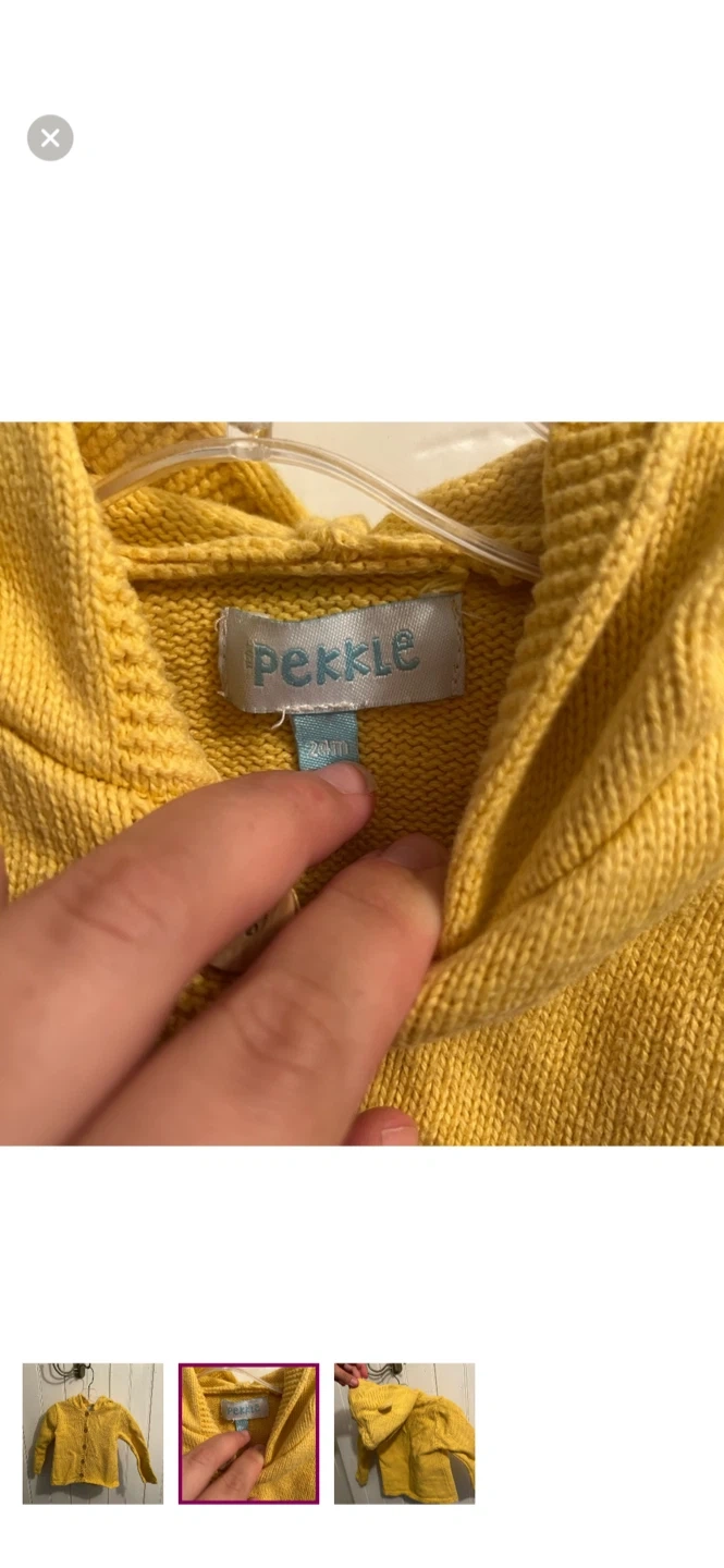 Pekkle brand. Yellow knit bear ear hooded cardigan. Yellow in colour. Size 24m. Brand new condition