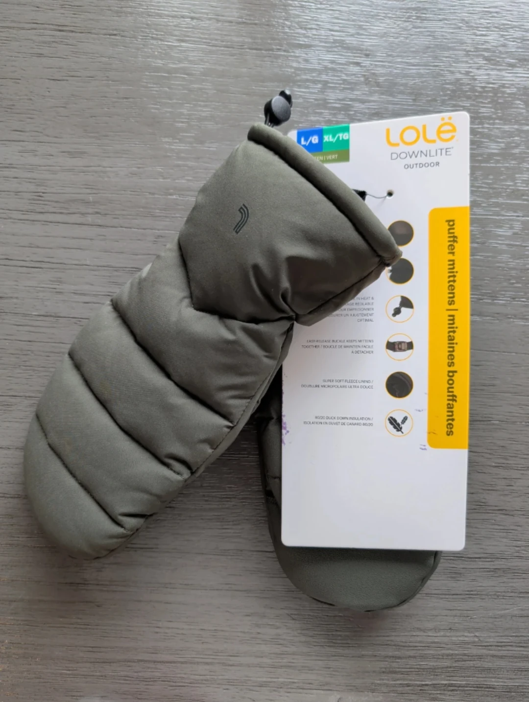 Lole Downlite puffer mittens. Includes easy release buckle for a snug fit. These mitts are made with duck down insulation for maximum warmth.