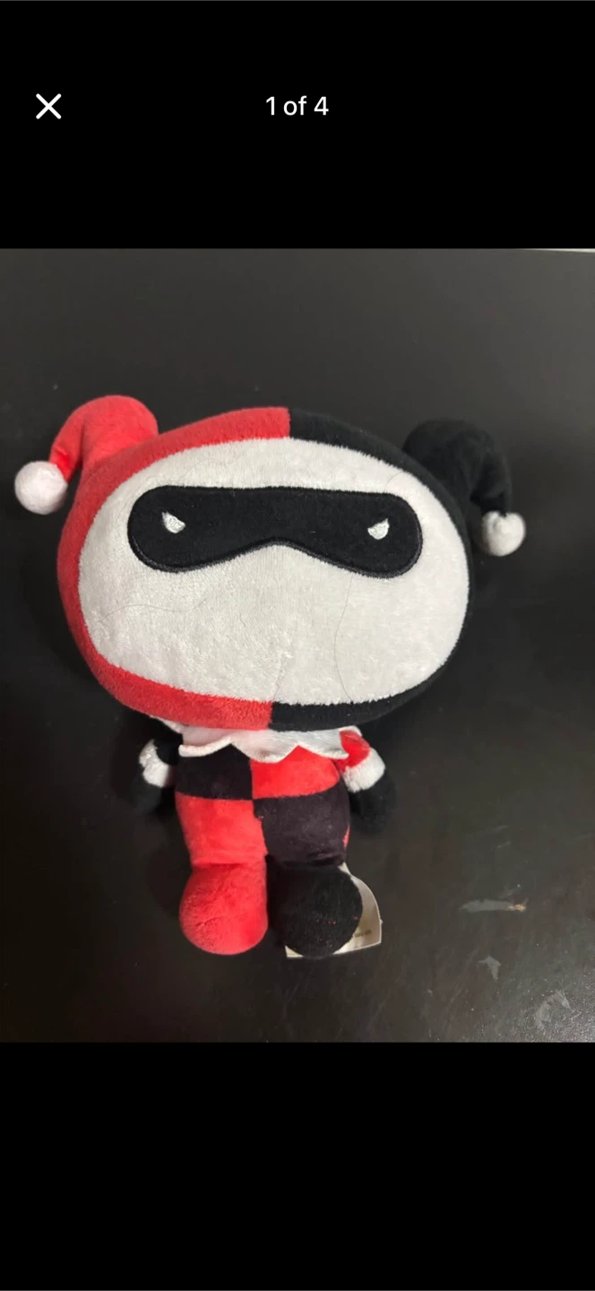 Plush toy featuring Harley Quinn's iconic red and black jester costume. Soft and cuddly, it's a fun collectible for fans. Made with plush material.also has shark and some small stuffy .smoke free pet free home .puck up 551 Emerson street. Coquitlam. Cash only . No delivery. No e-transfer.