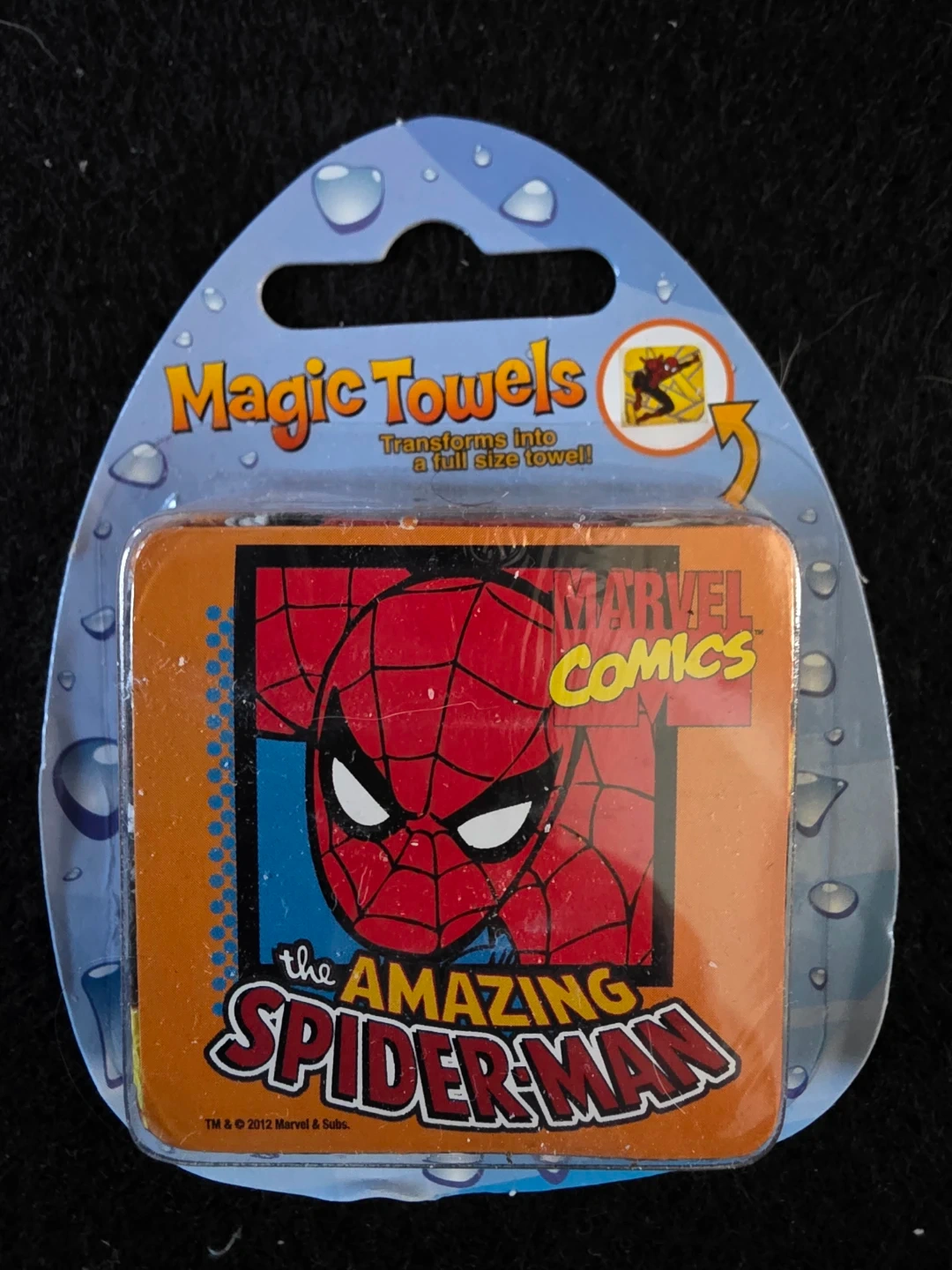 These are Marvel Magic Towels featuring Ultimate Spider-Man and the Avengers. They transform into full-size towels. Great for bath time or playtime!