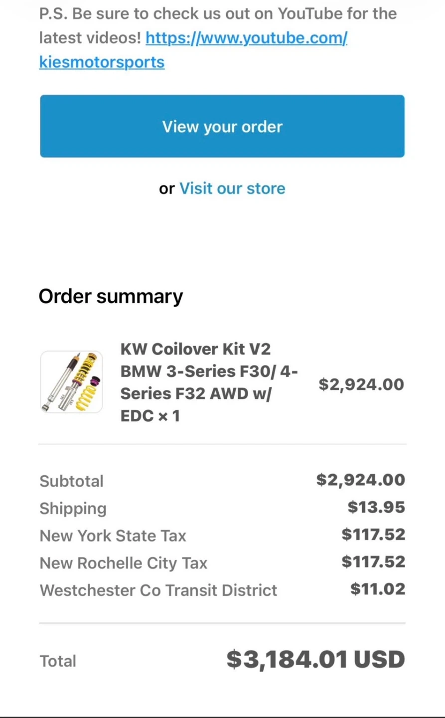 Brand New KW V2 Coilover for f3x Chassis with Xdrive with EDC ! My loss is your gain. $2800 located in NYC