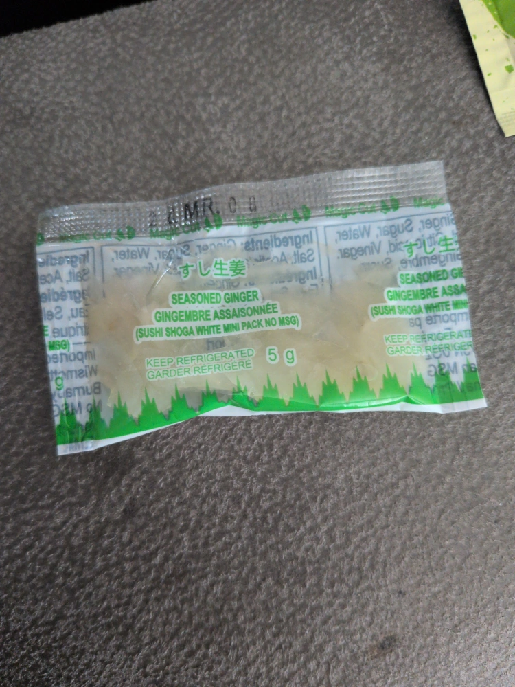 Selling a mini pack of seasoned ginger, perfect for sushi! It's the Sushi Shoga White Mini Pack and contains 5g of ginger. Keep refrigerated until you're ready to use it