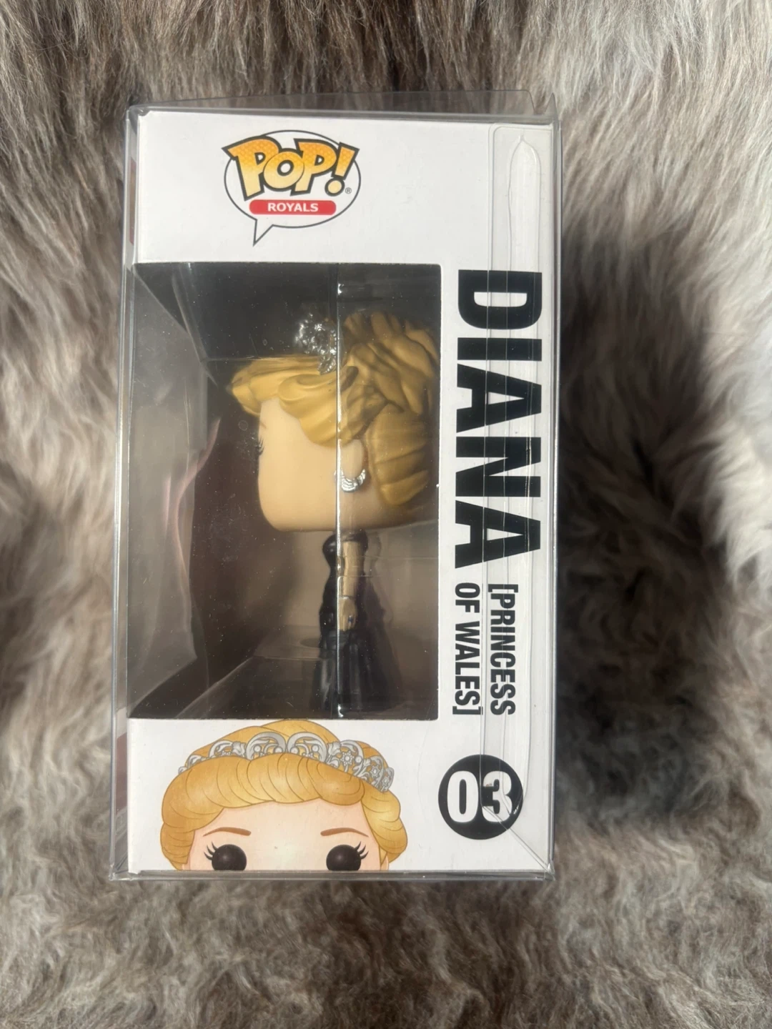Funko Pop! Royals vinyl figure of Diana, Princess of Wales number 03 with the black dress.. Vinyl figure in original packaging with protective sleeve.